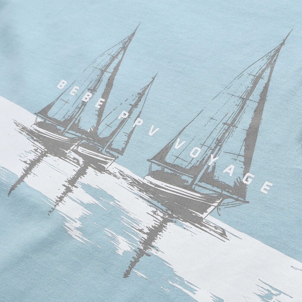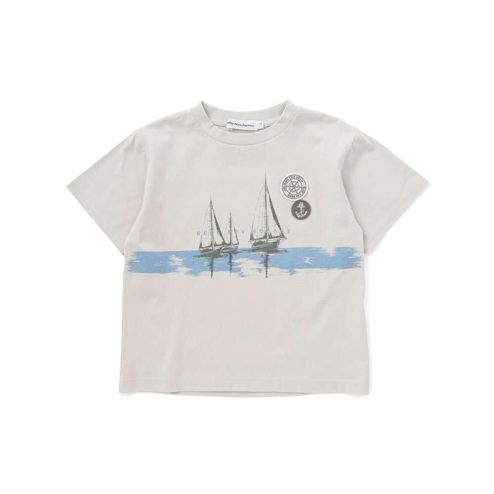 涼し気なヨットプリントが上品な半袖Tシャツ。
