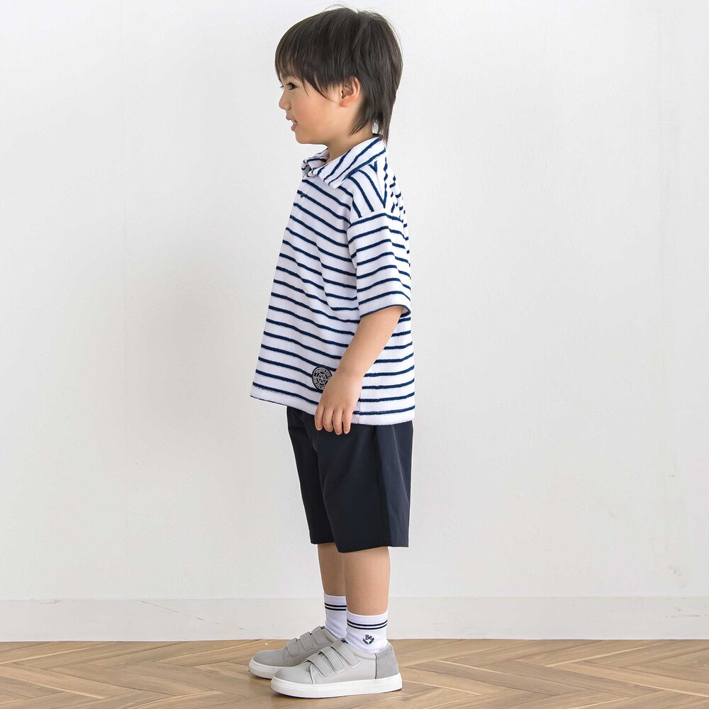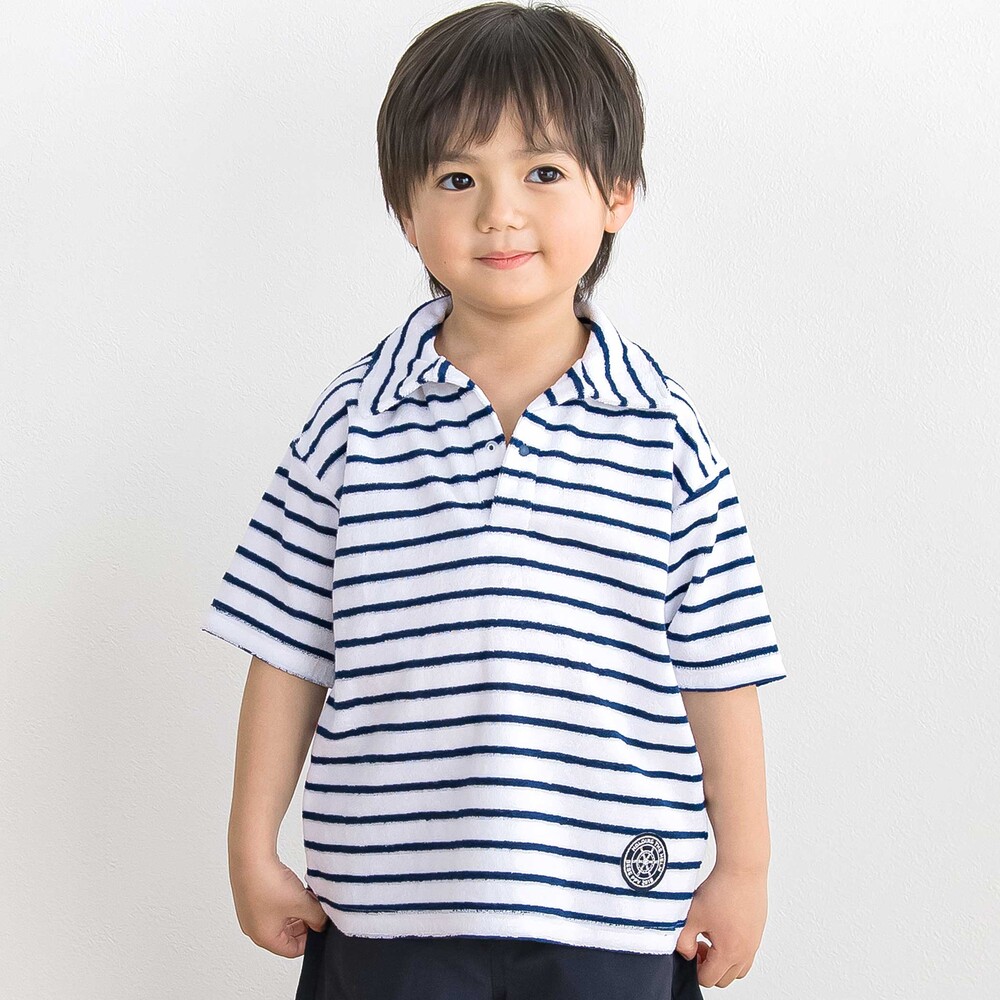 爽やかなボーダーで楽しむ、夏の男の子用半袖トップス。