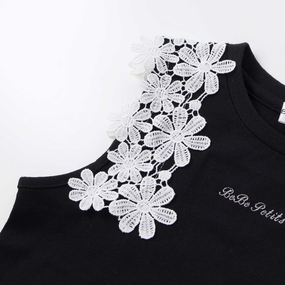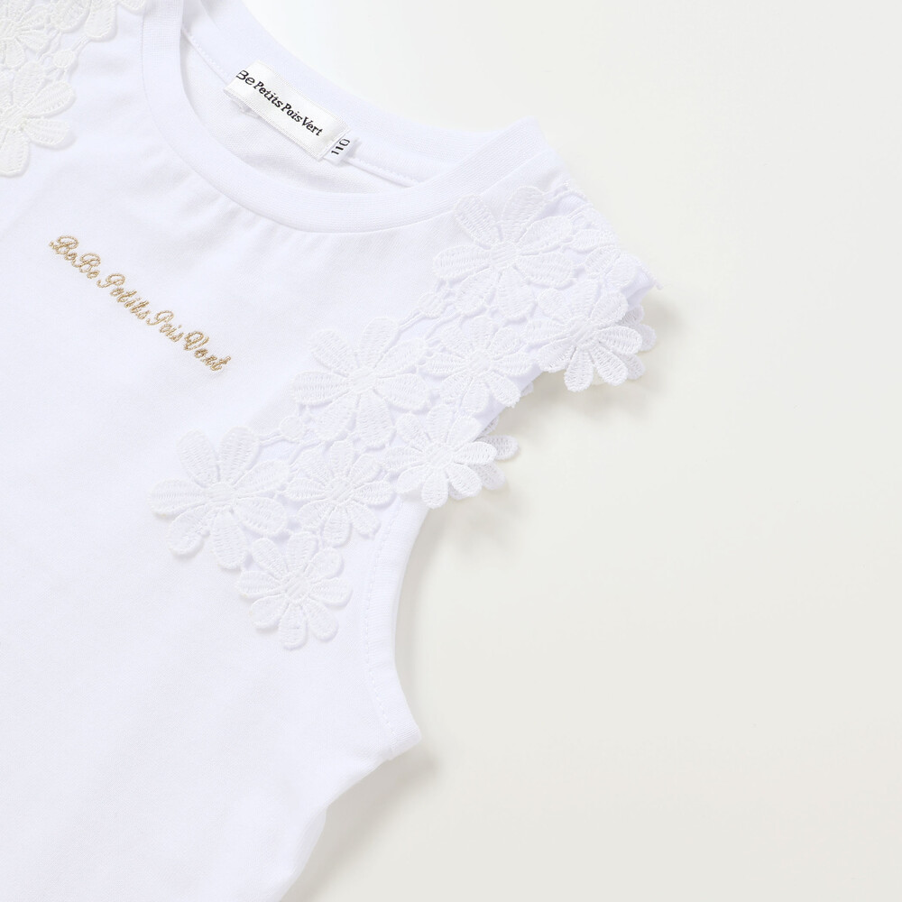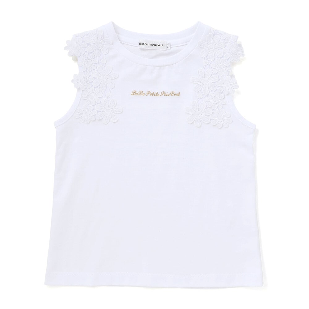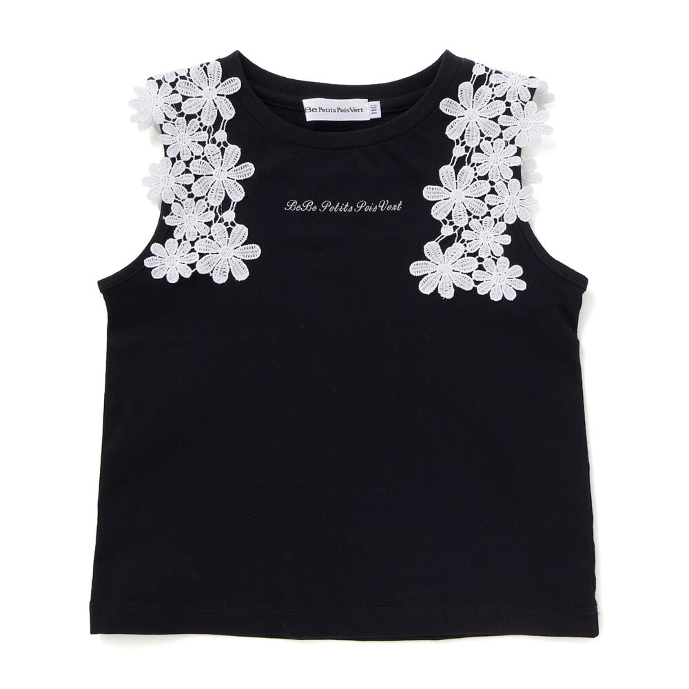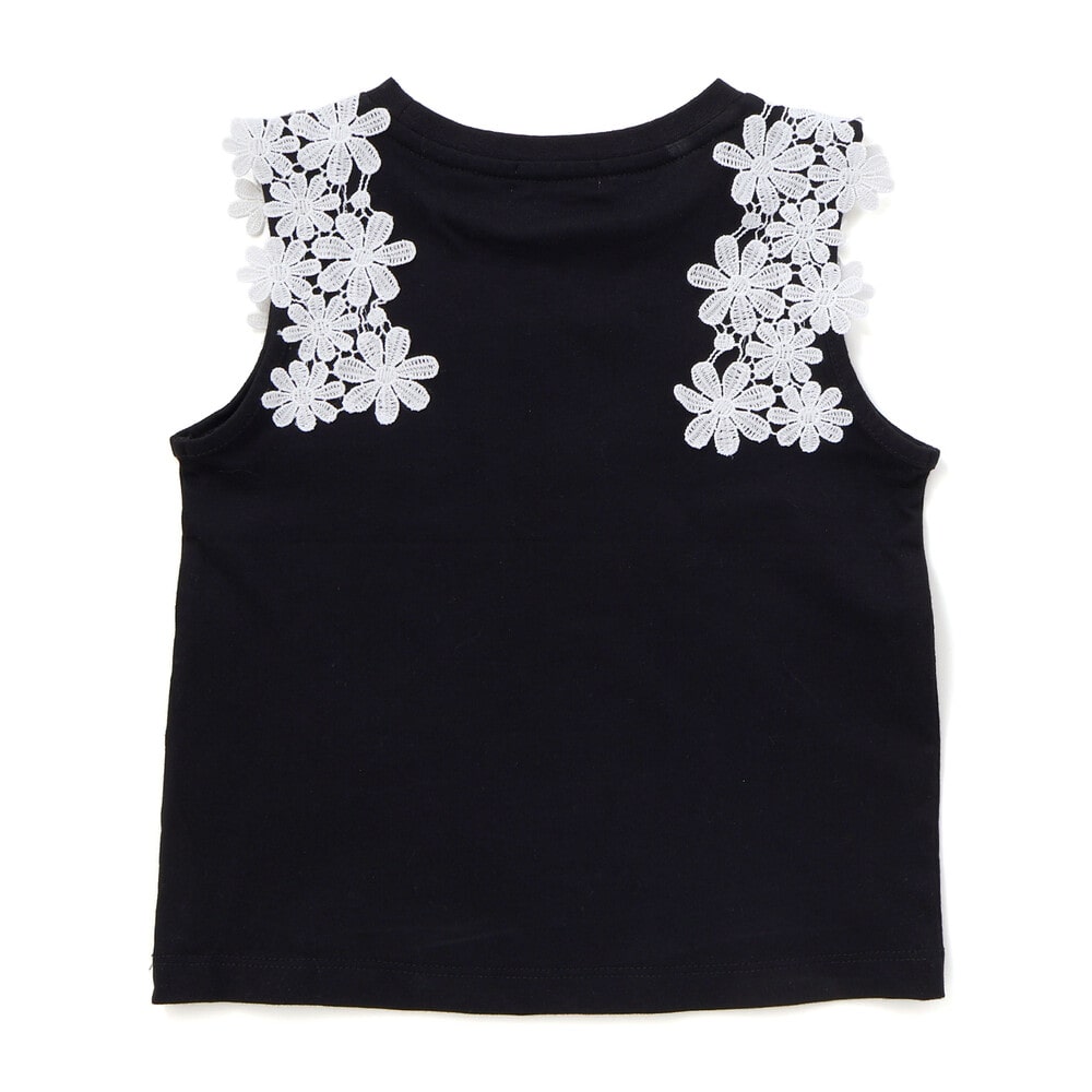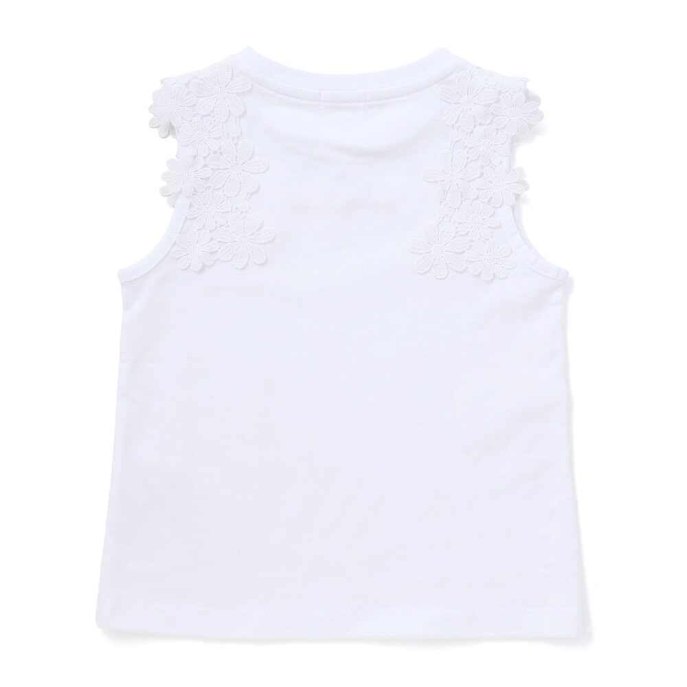 肩まわりのレース使いが目を引くノースリーブトップス。