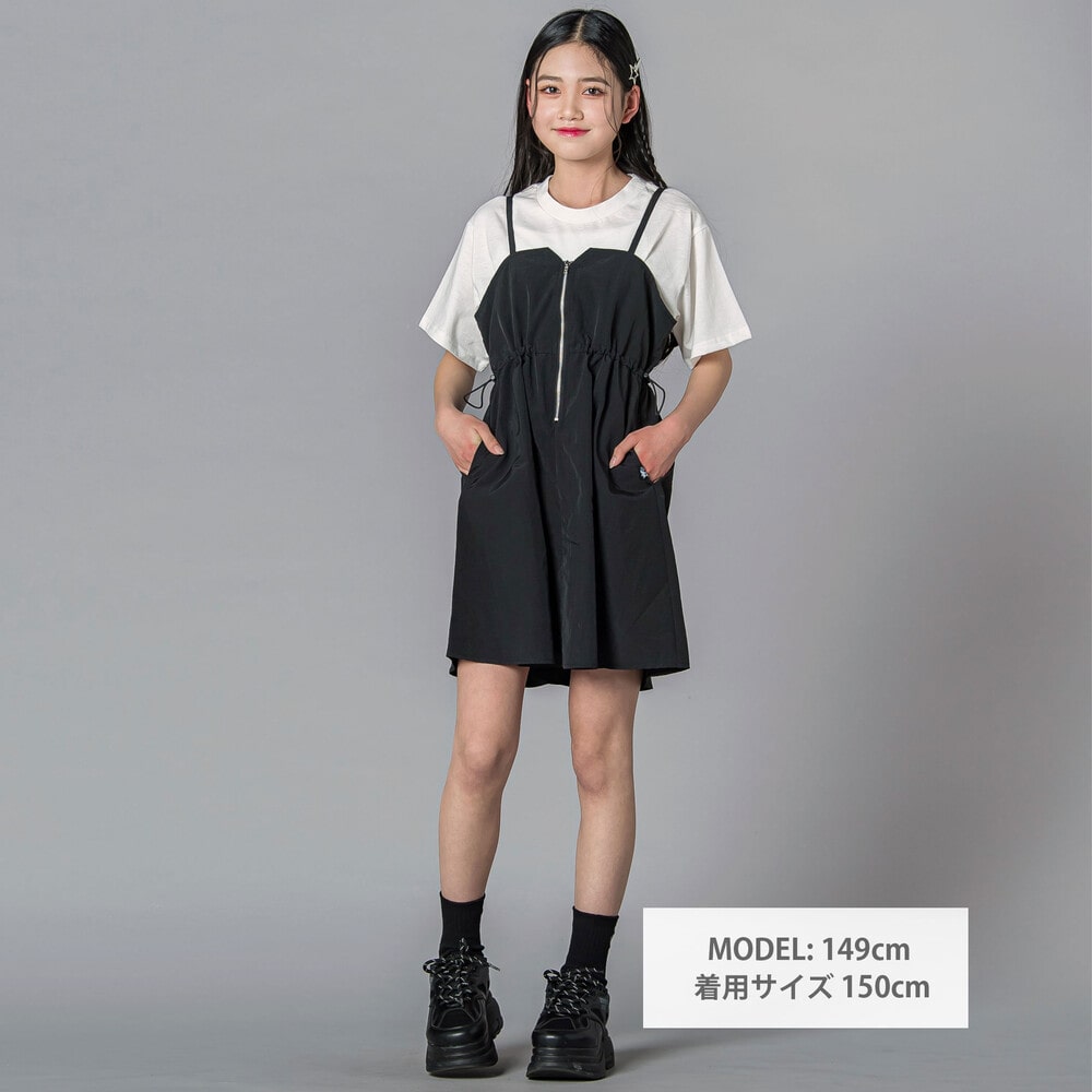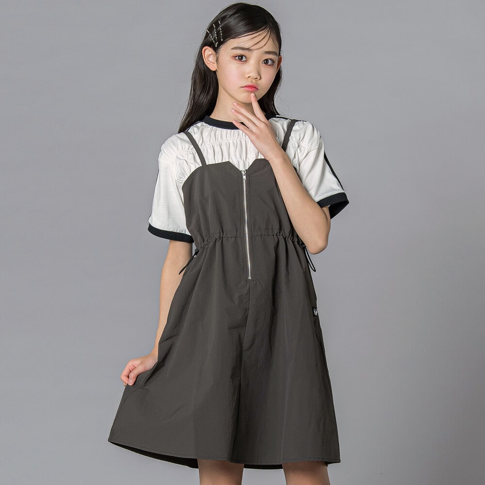 フロントZIPで今っぽバズれちゃうウエスト盛れも叶う、軽かわスポMIXの夏主役ジャンスカ。