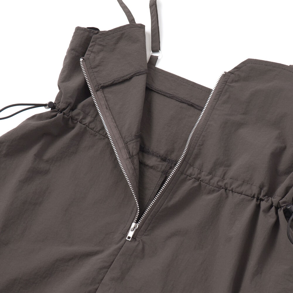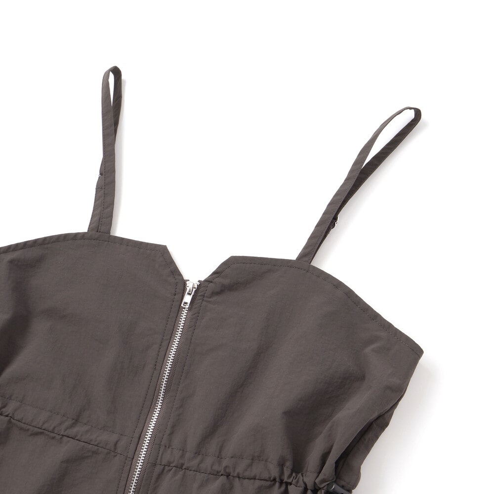 スポーティなキャミデザインに、フロントZIPとドロストを合わせた“今どきスポMIX”。