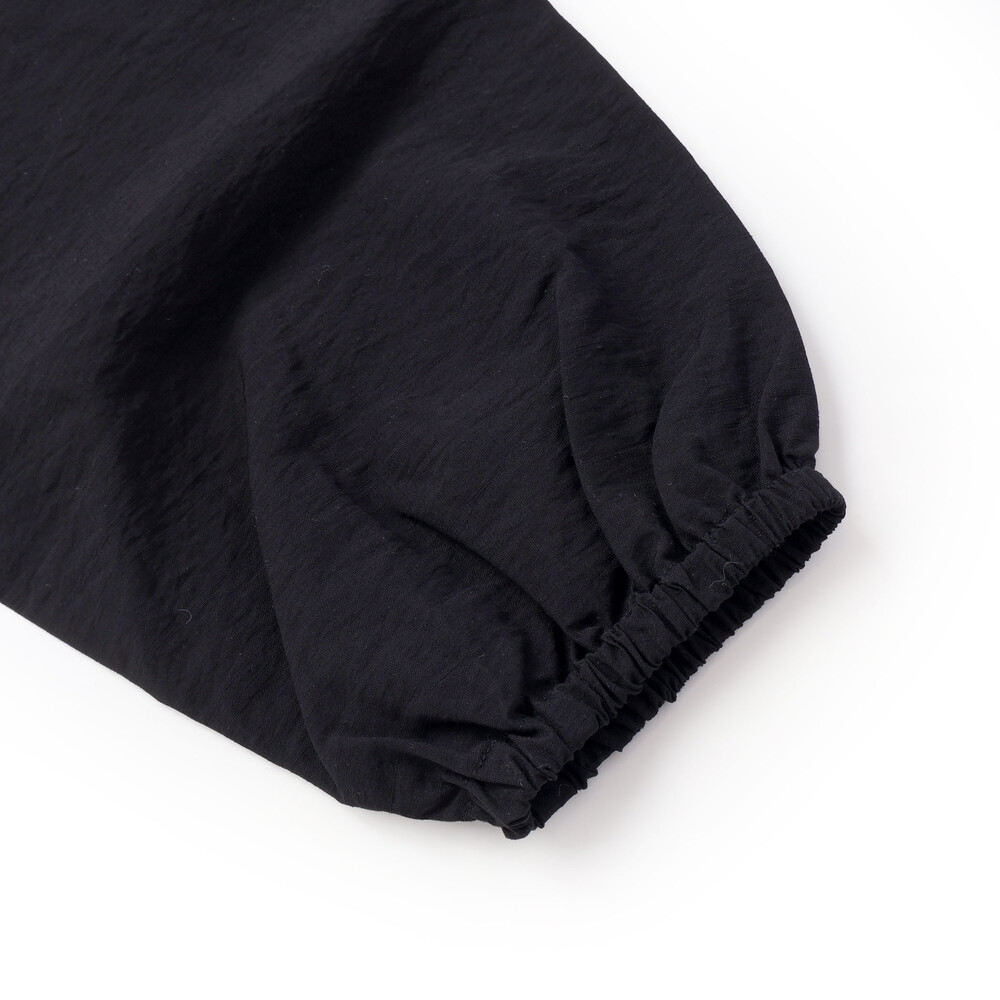 胸元のプチプリントがさりげなくアクセントになって、黒なのに重くならず、都会っぽいクール感をプラスしてくれるよ。