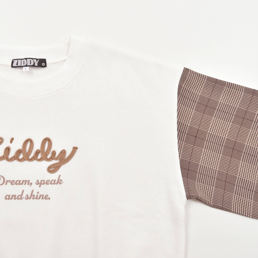 チェック切り替えの袖とコード刺しゅうのロゴテープがポイント。