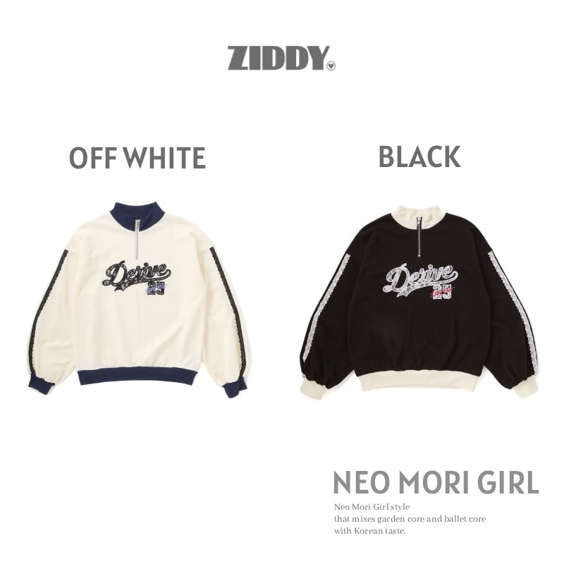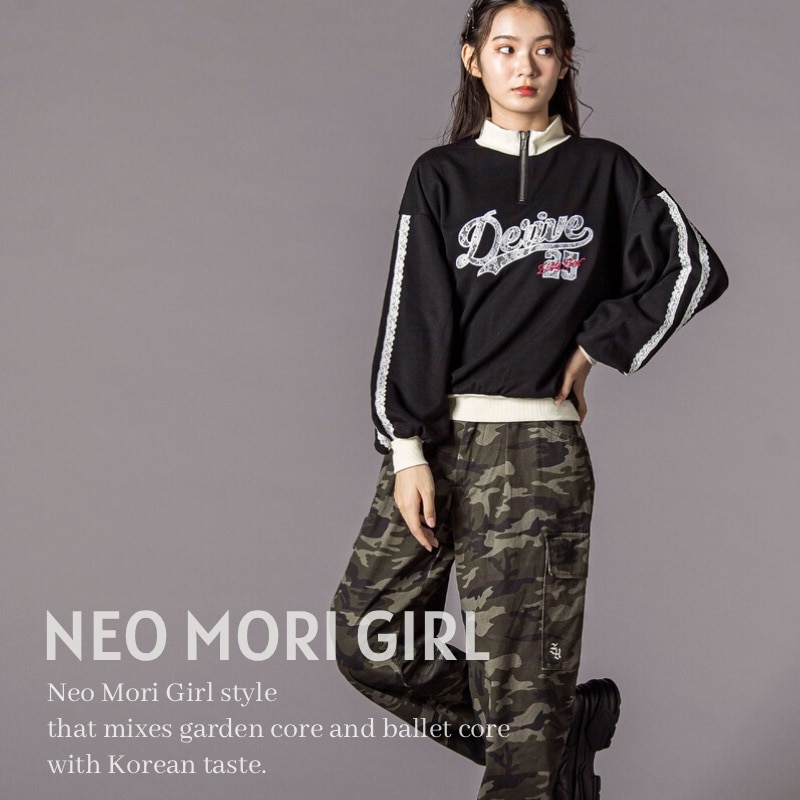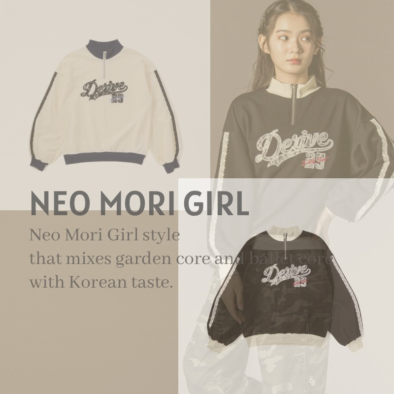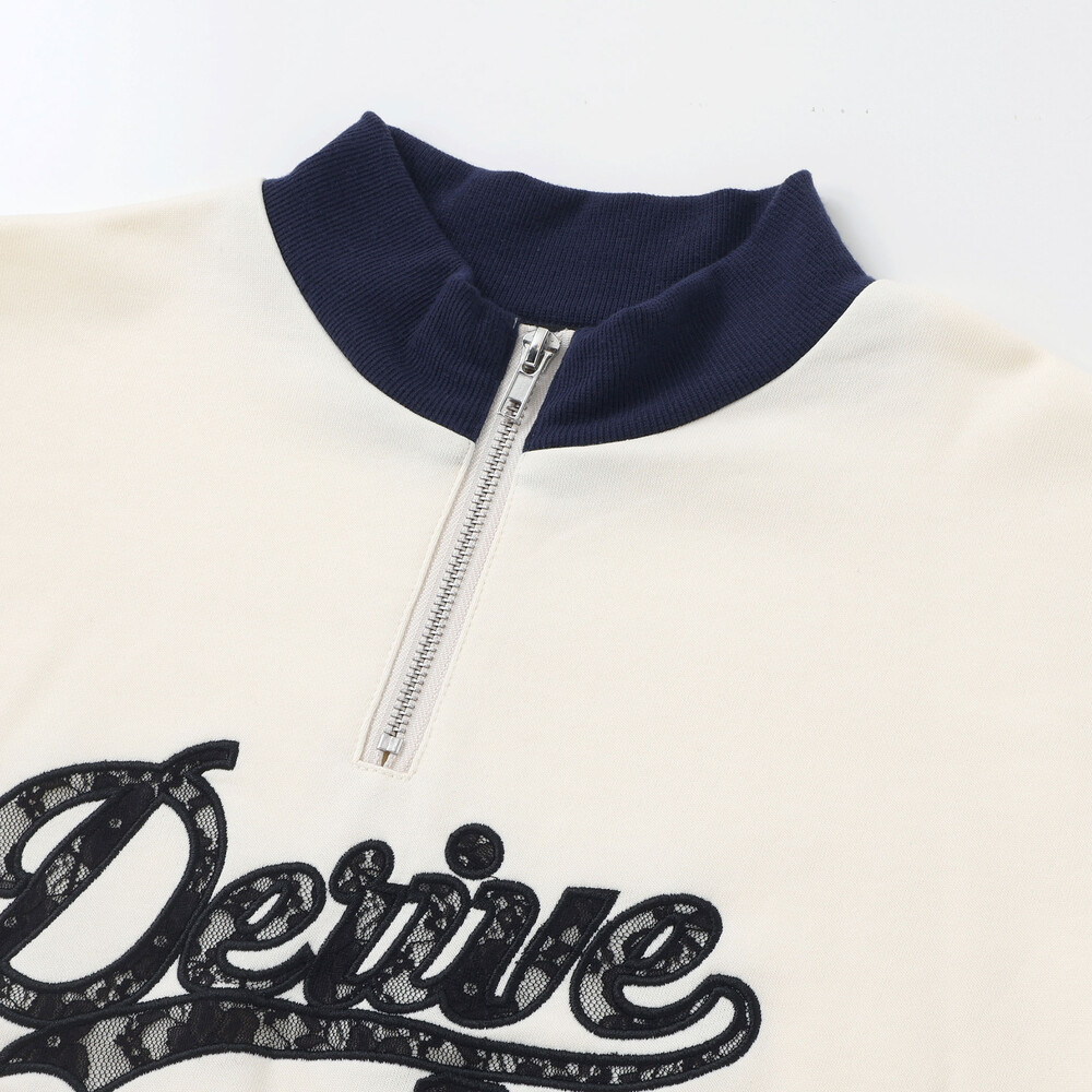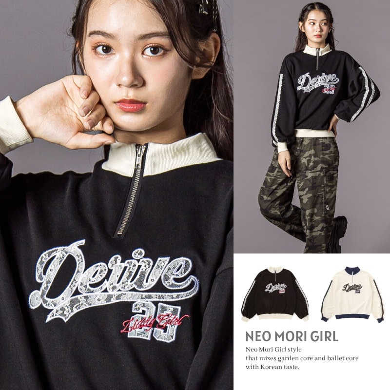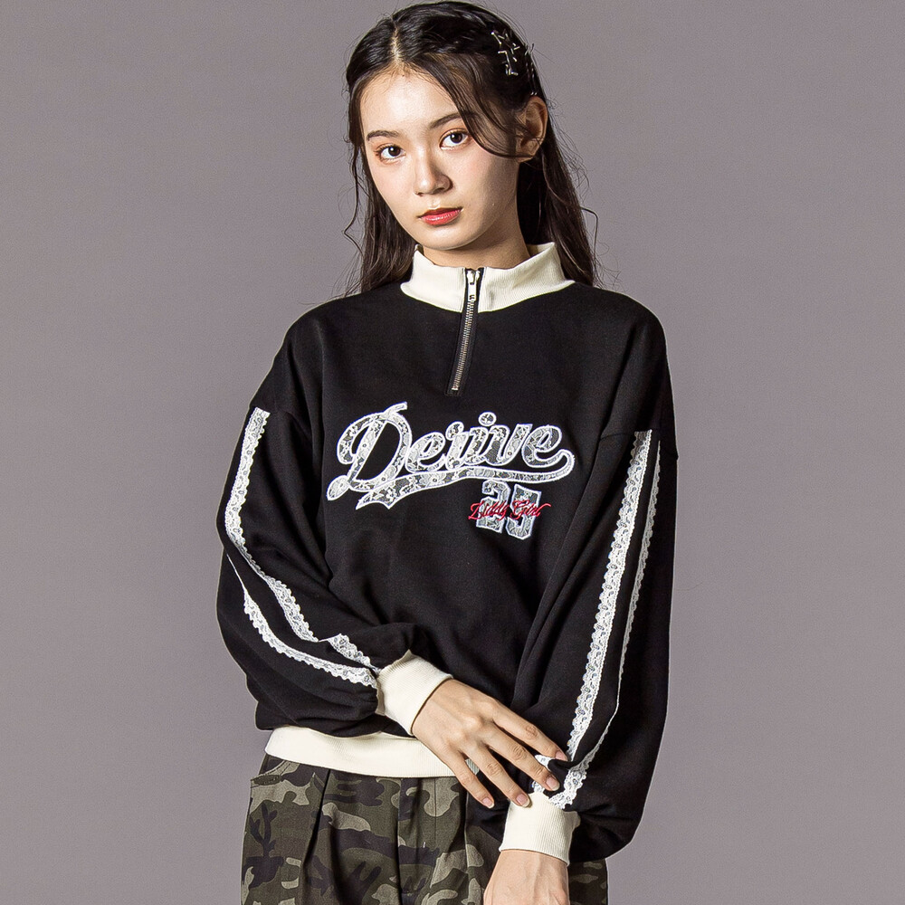 袖のレースラインとリブ切り替えがスポーツ感を出して、都会っぽかわいい雰囲気に。