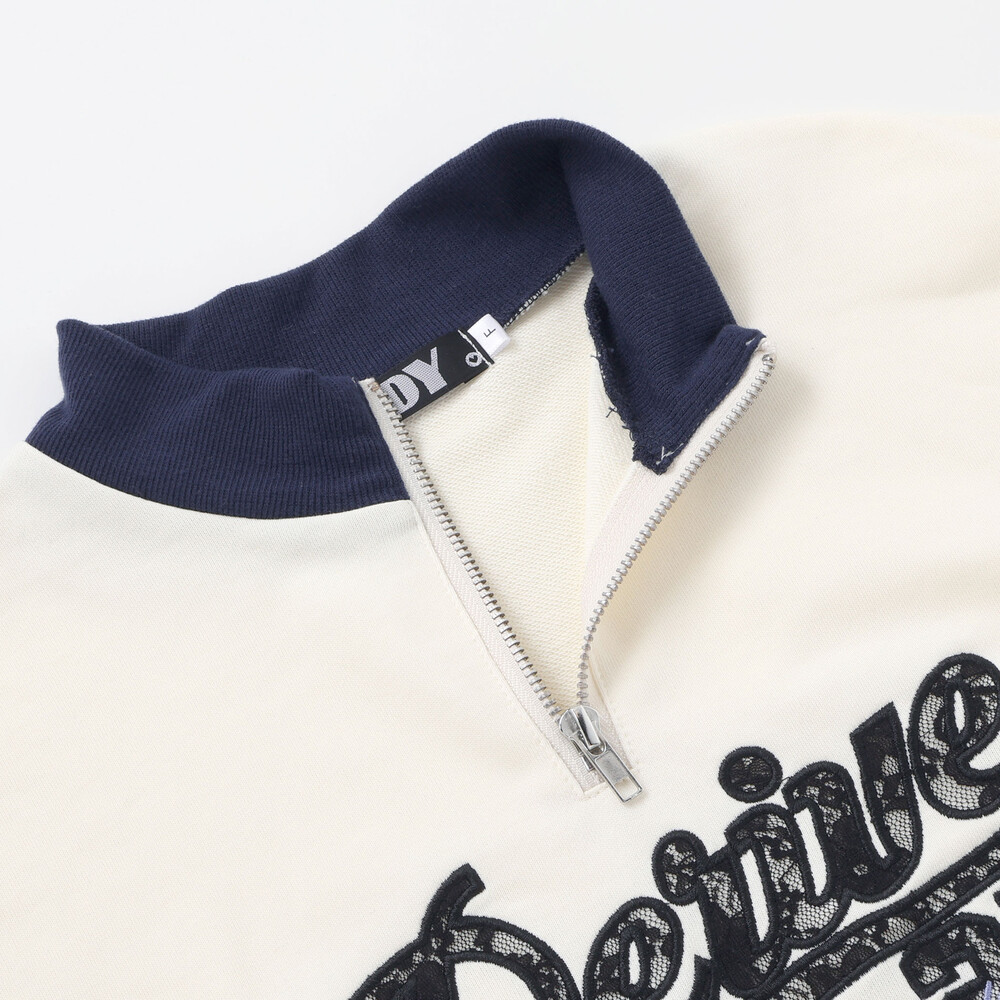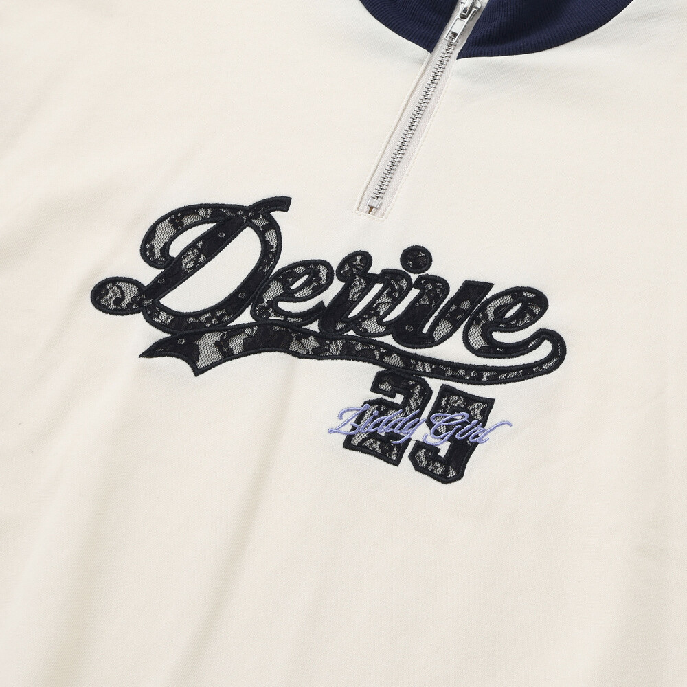 胸元のロゴと数字は、レースのパッチワークと刺しゅう仕上げで特別感たっぷり。