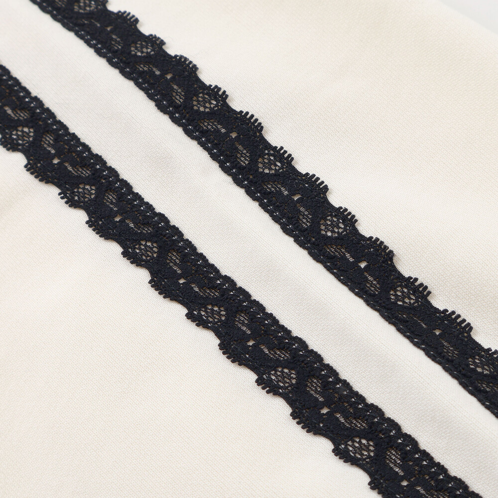 オフホワイト×ブラックレースは透明感ある清楚さをミックス、ブラック×オフホワイトレースは大人っぽヘルシーな存在感。