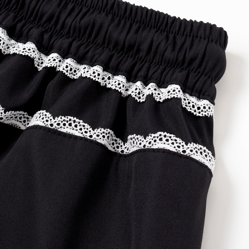 前は一段、後ろはV字に二段のレースがポイントで、トップスからチラッと見える瞬間が超かわいい