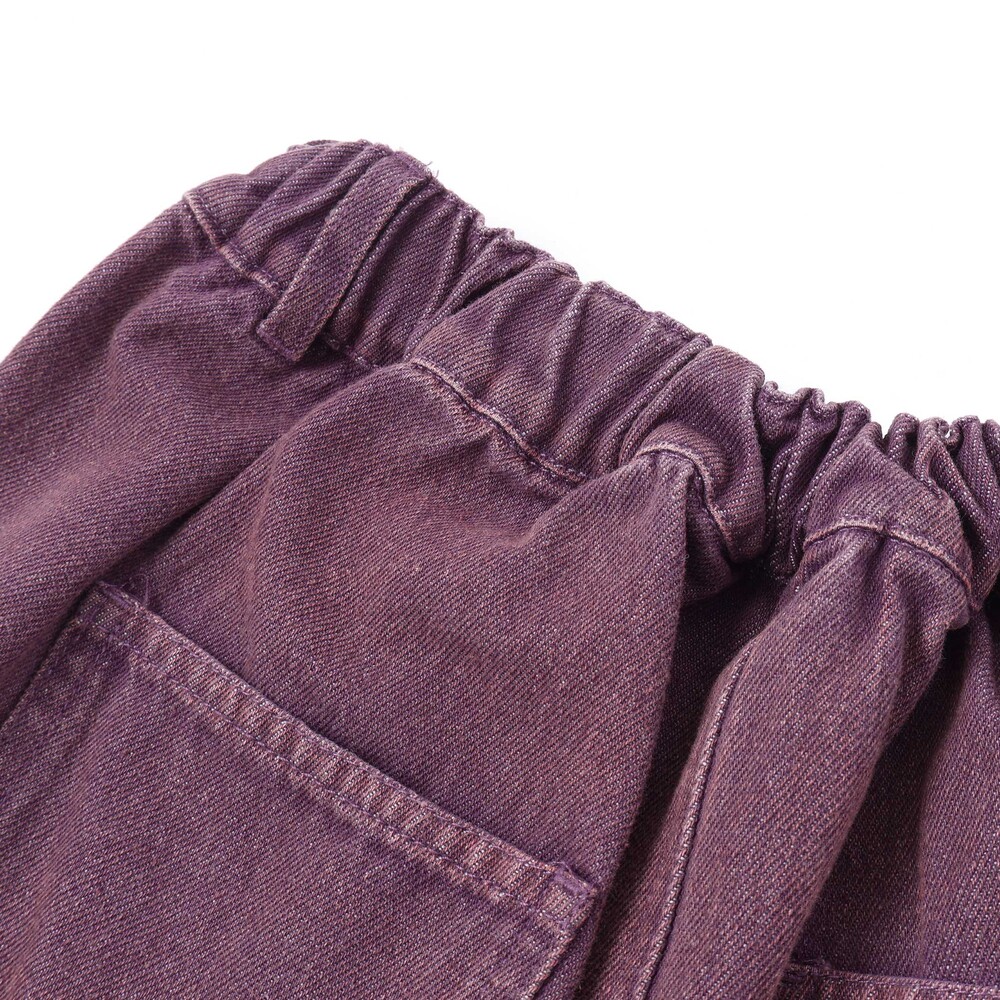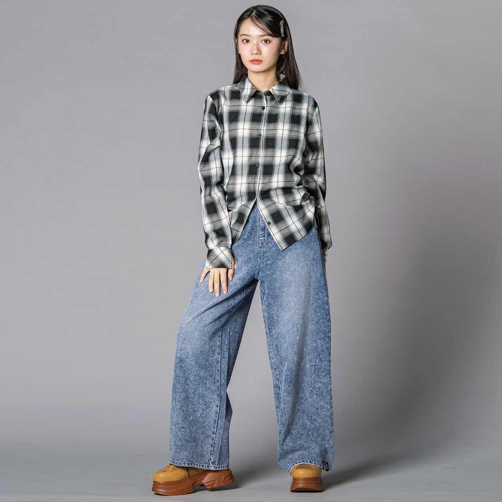 ウエスタンコアのスタッズをポケットに散りばめて、韓国ガールみたいな甘辛ムードに仕上げたデニムワイド。