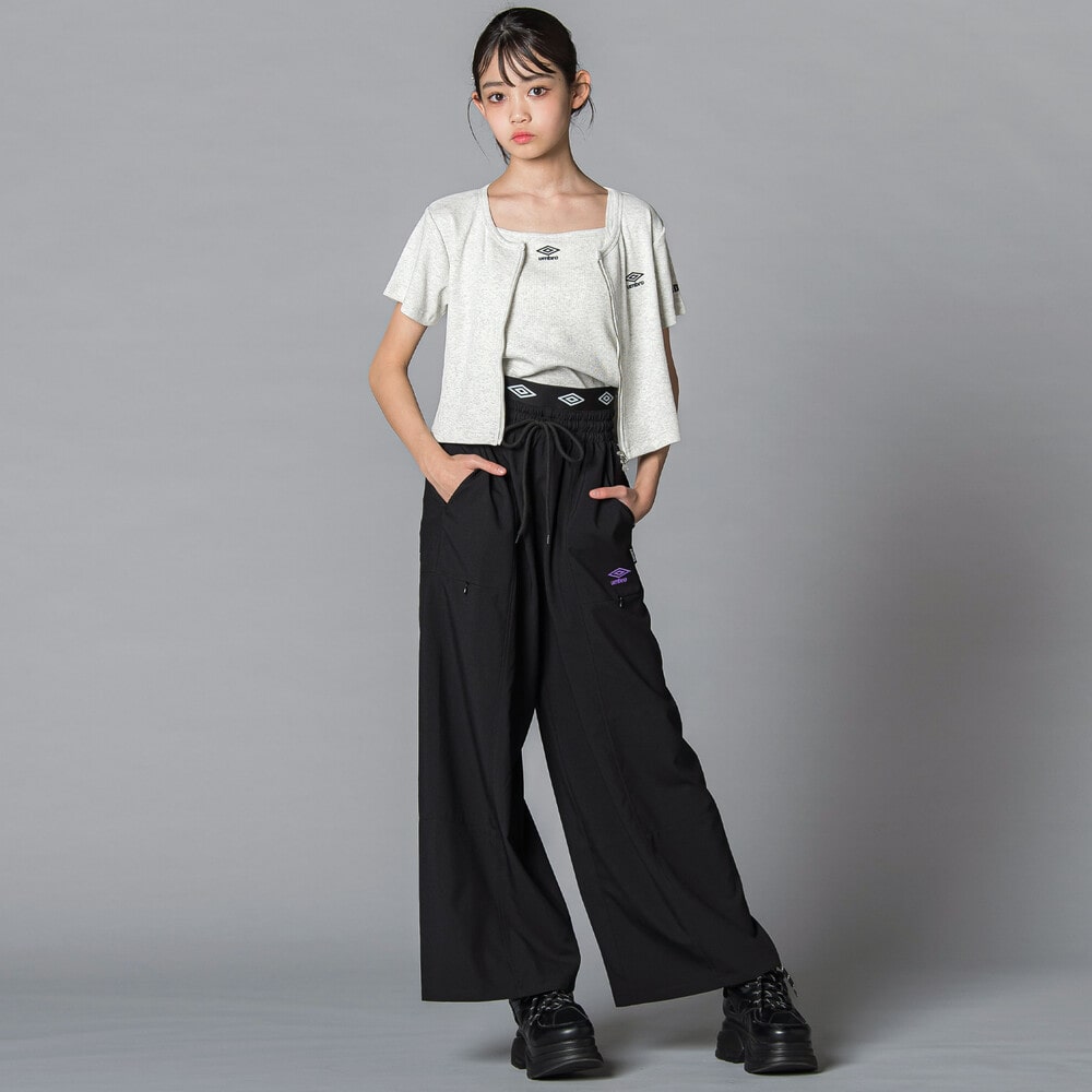 ポケット多めの実用性はそのままに、きれいに落ちるワイドシルエットが通学コーデまでかわいくアップデートしてくれる。