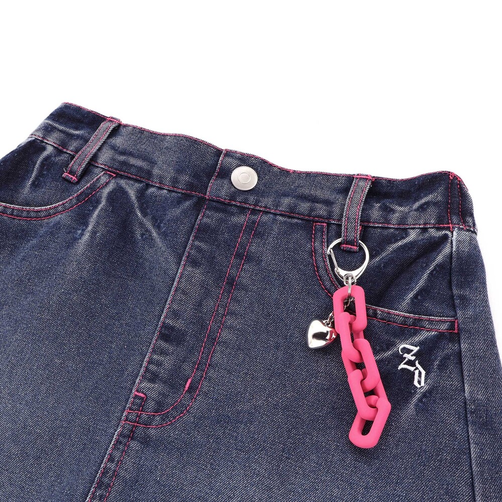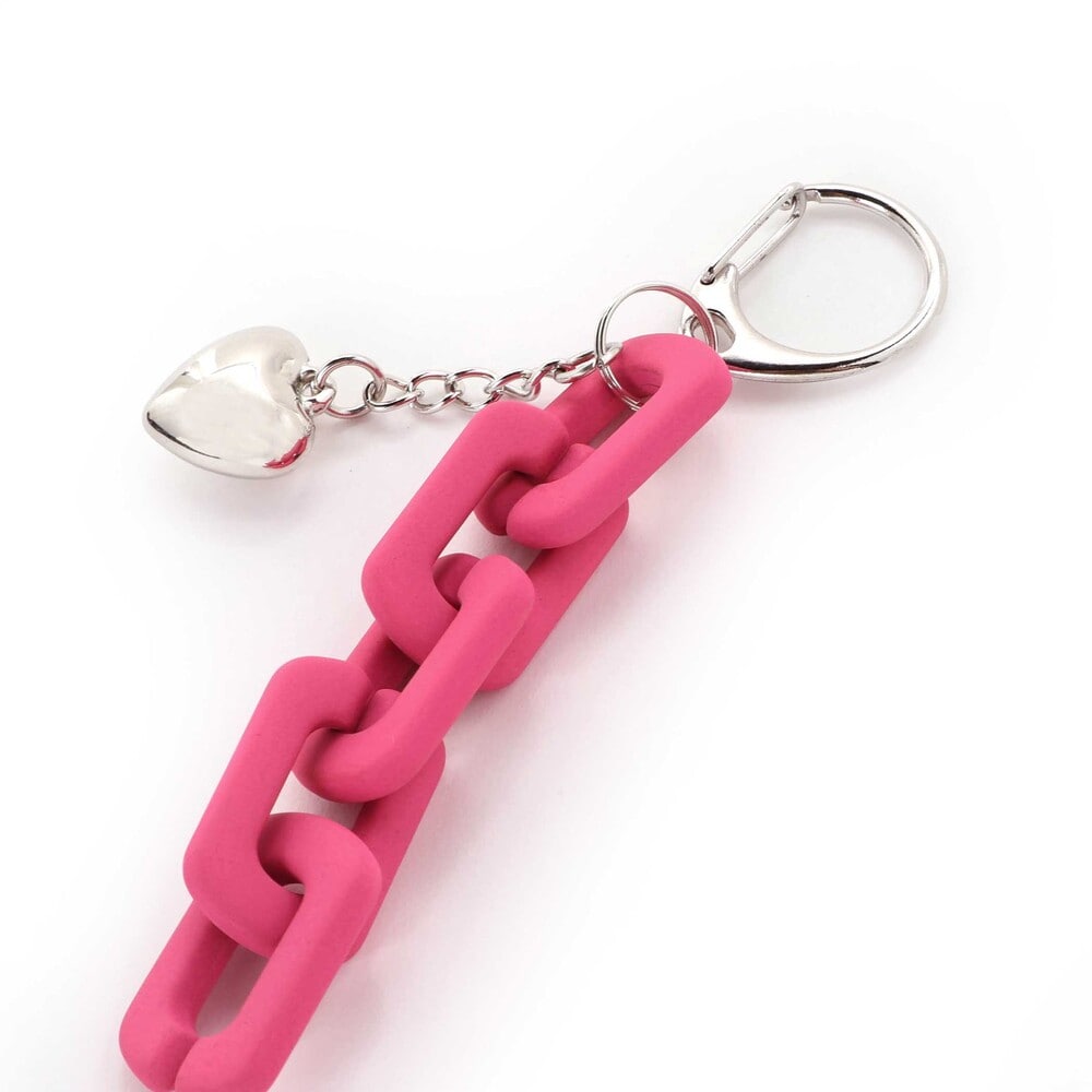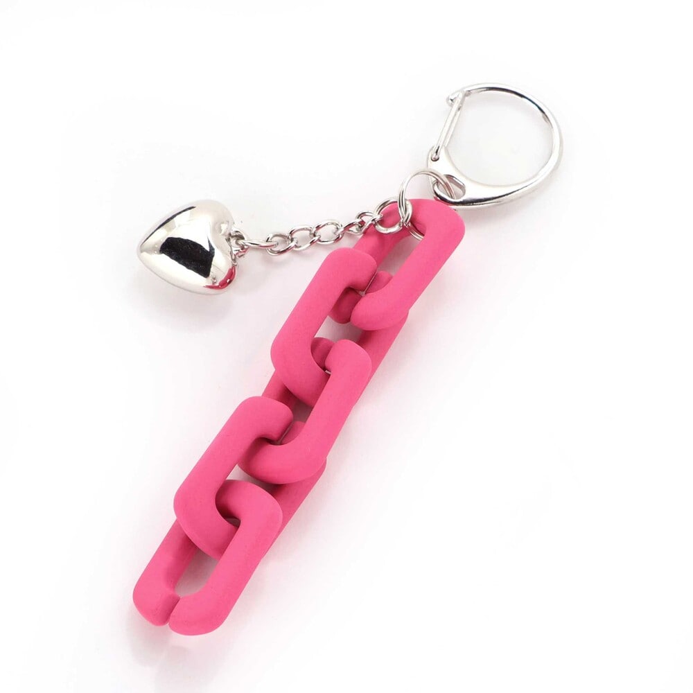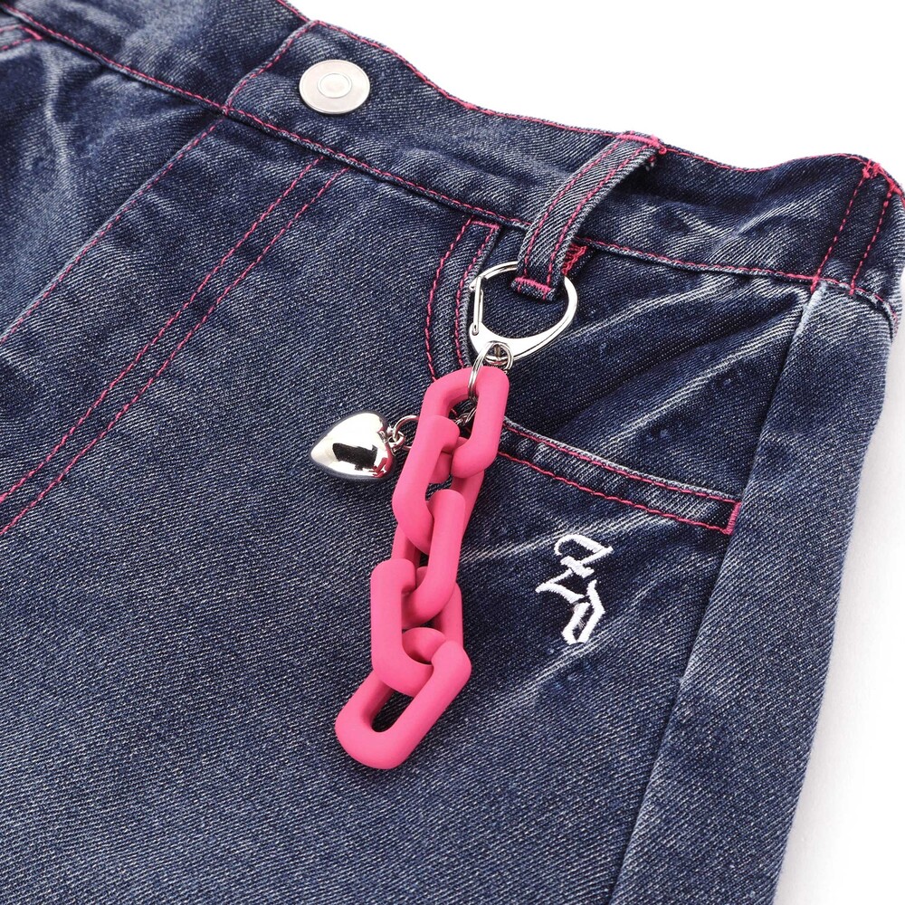 ピンクのチェーンとハートチャームがアクセみたいにゆれて、一気に今っぽい“平成ギャルMIX”に。