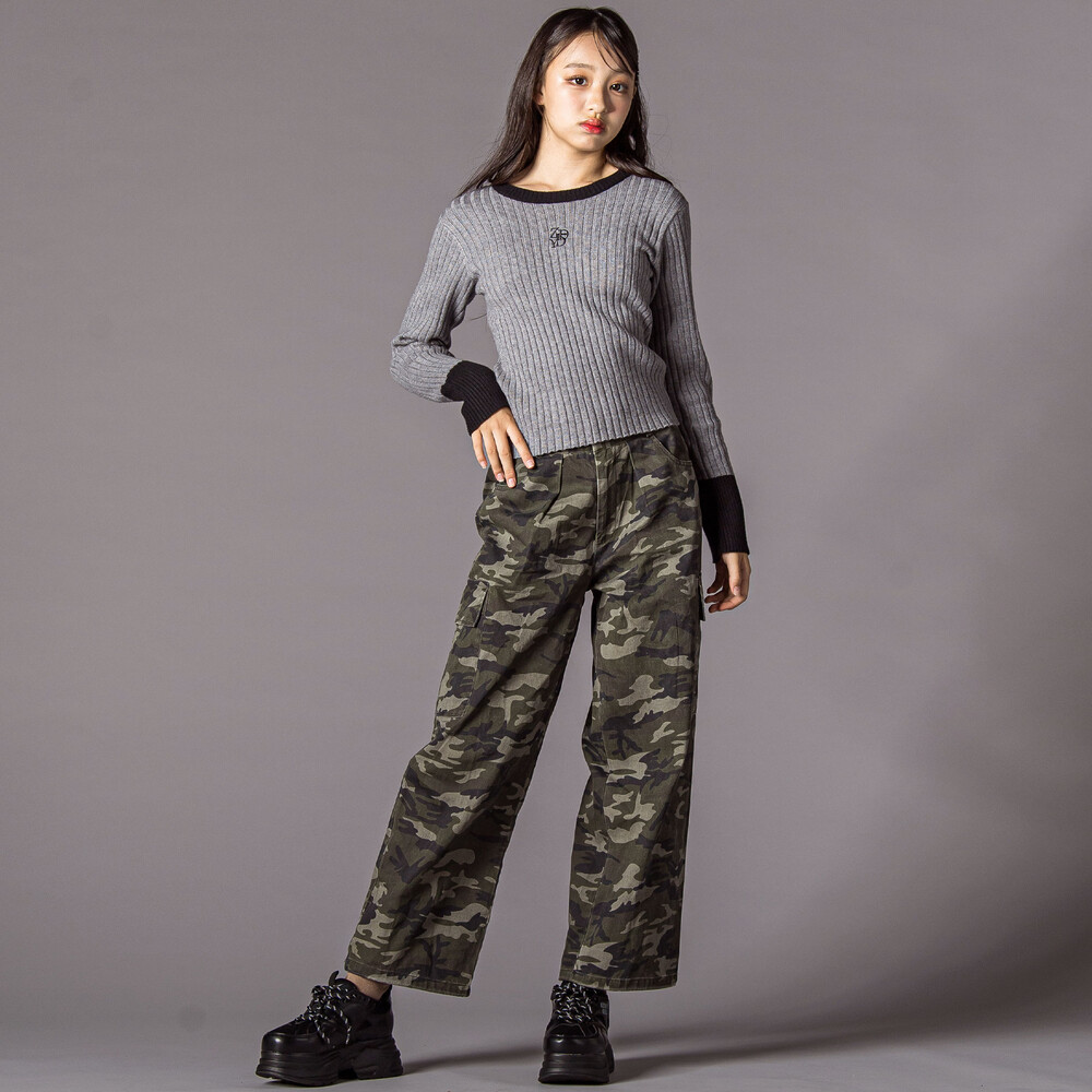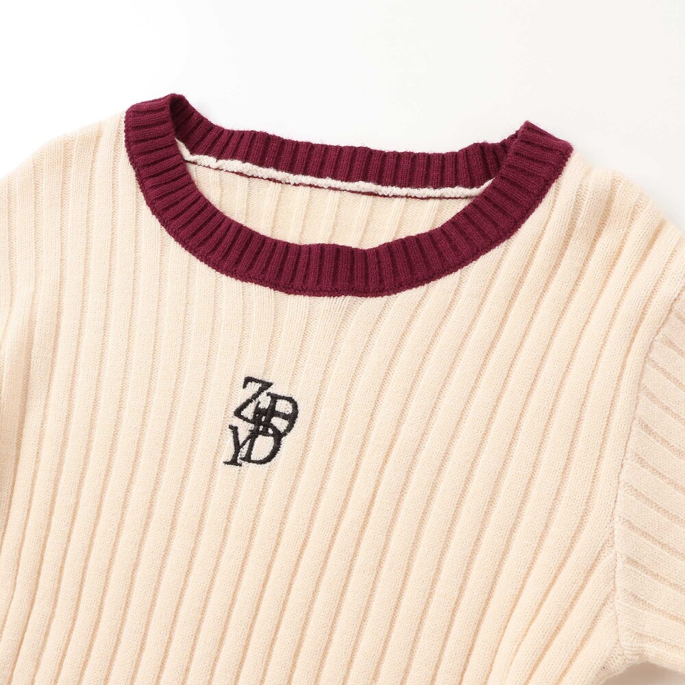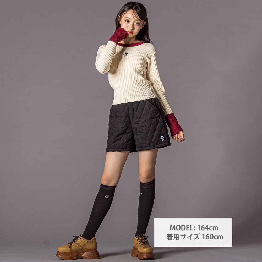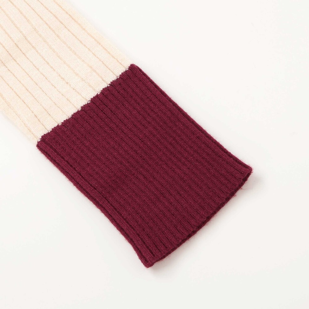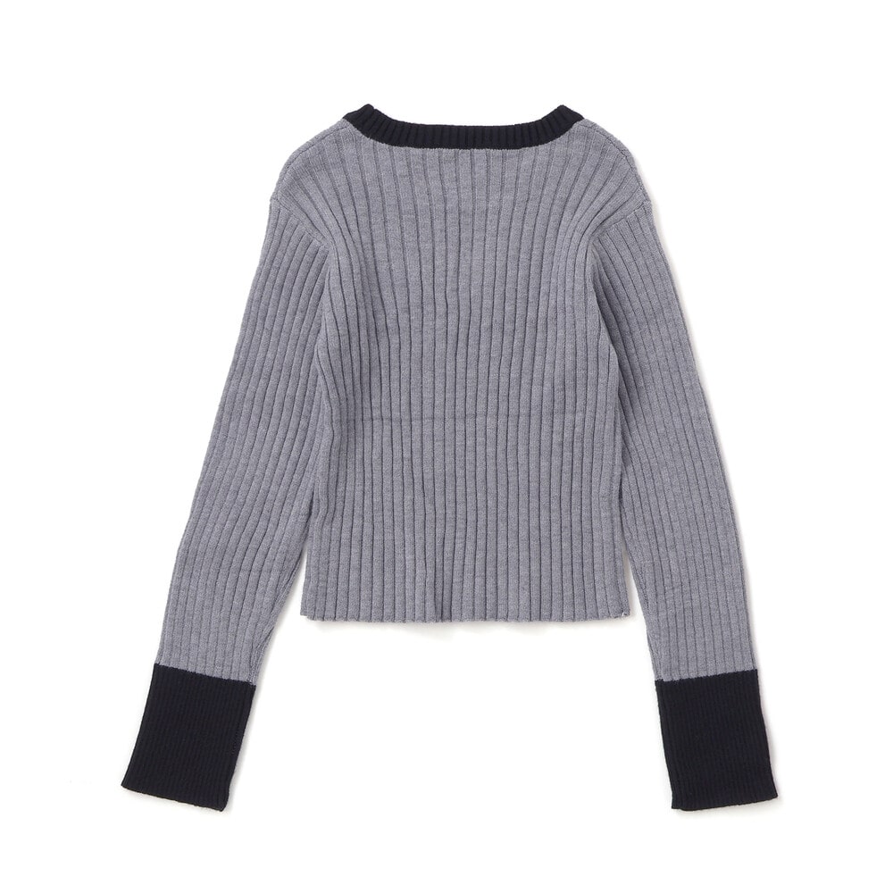 首もとすっきりのリブニットに、袖口をキュッときかせてスタイルよく見えるデザイン。