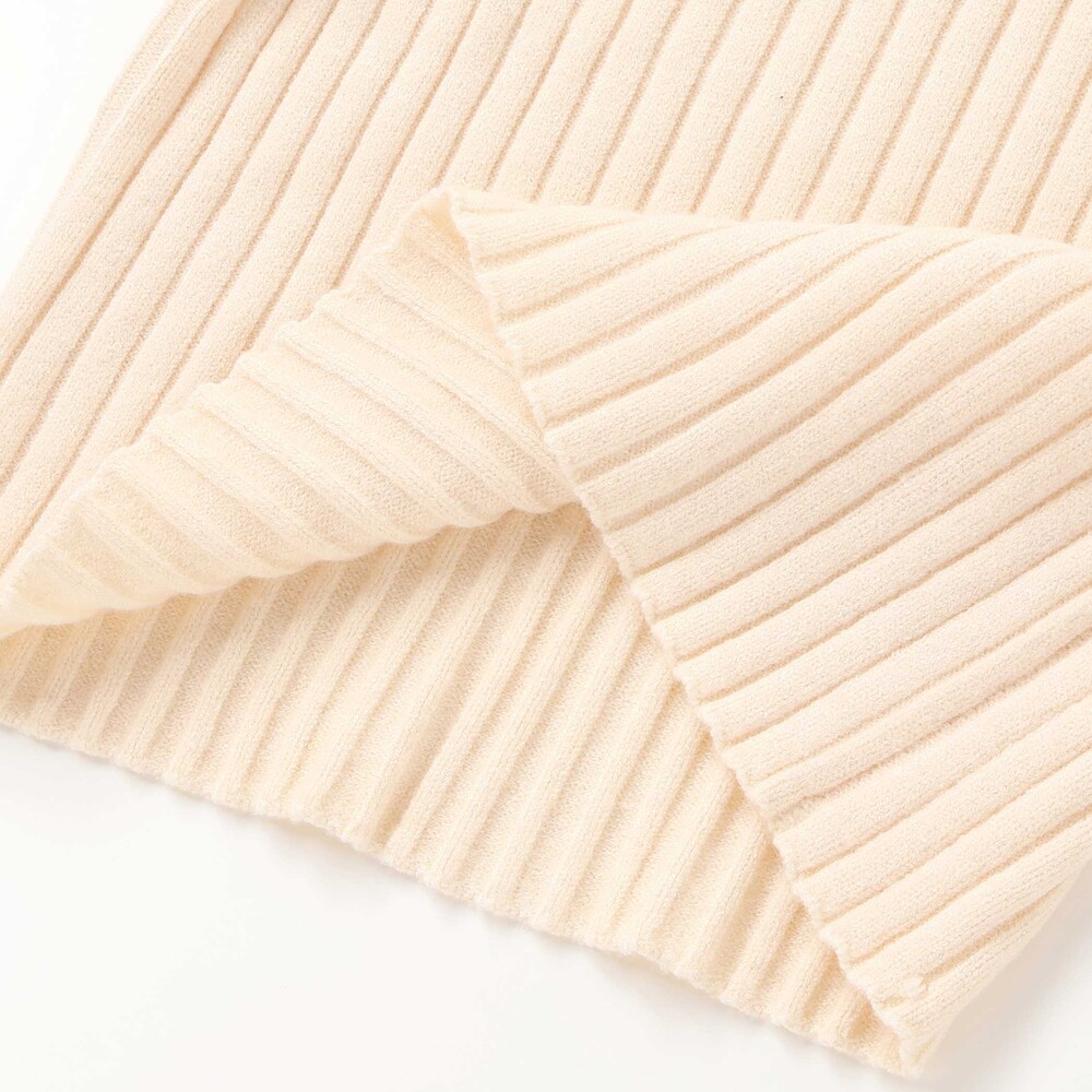 リブ編みなのでストレッチ性があり動きやすく、ロングデイでもストレスフリー。
