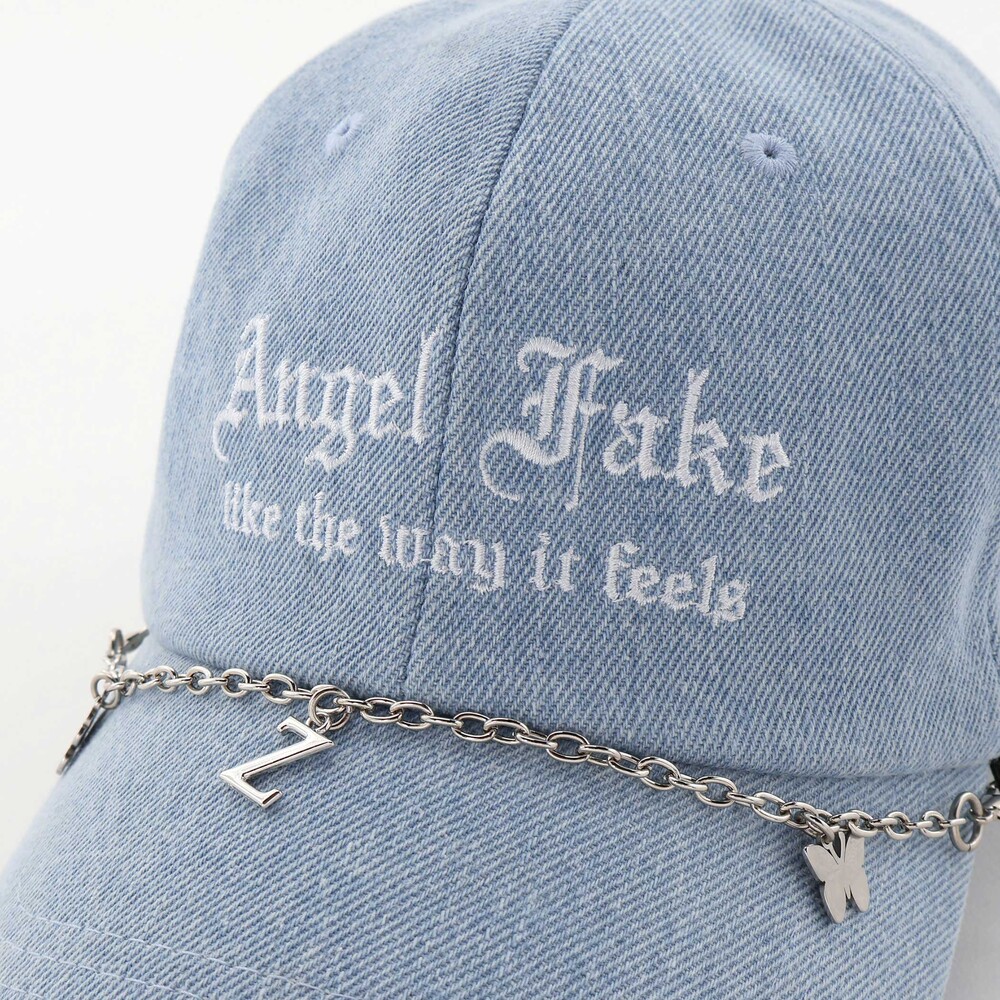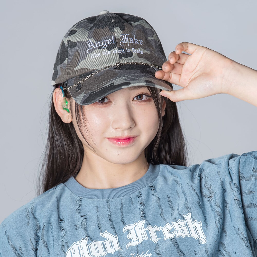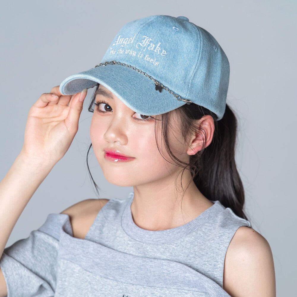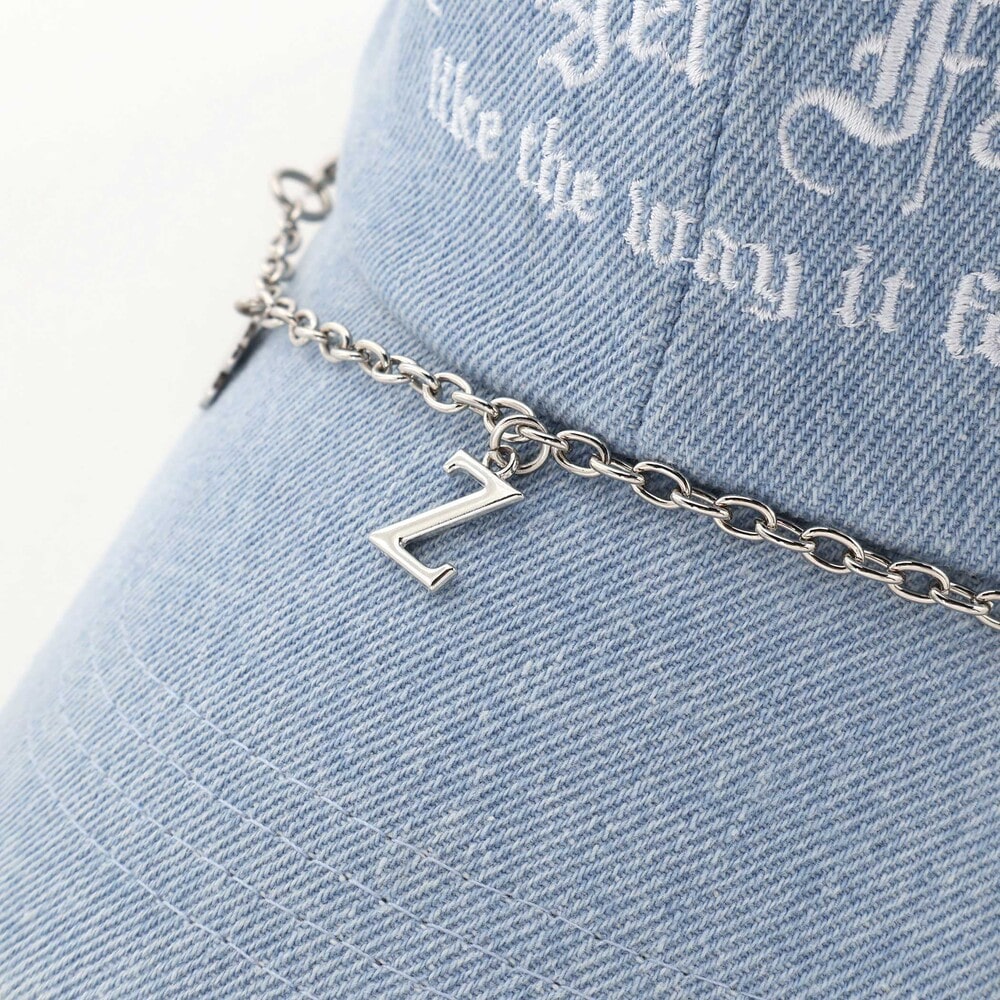 ギャルみのあるシルバーチェーンがきらっと揺れて、普段のキャップより“おしゃれ見え”確定。