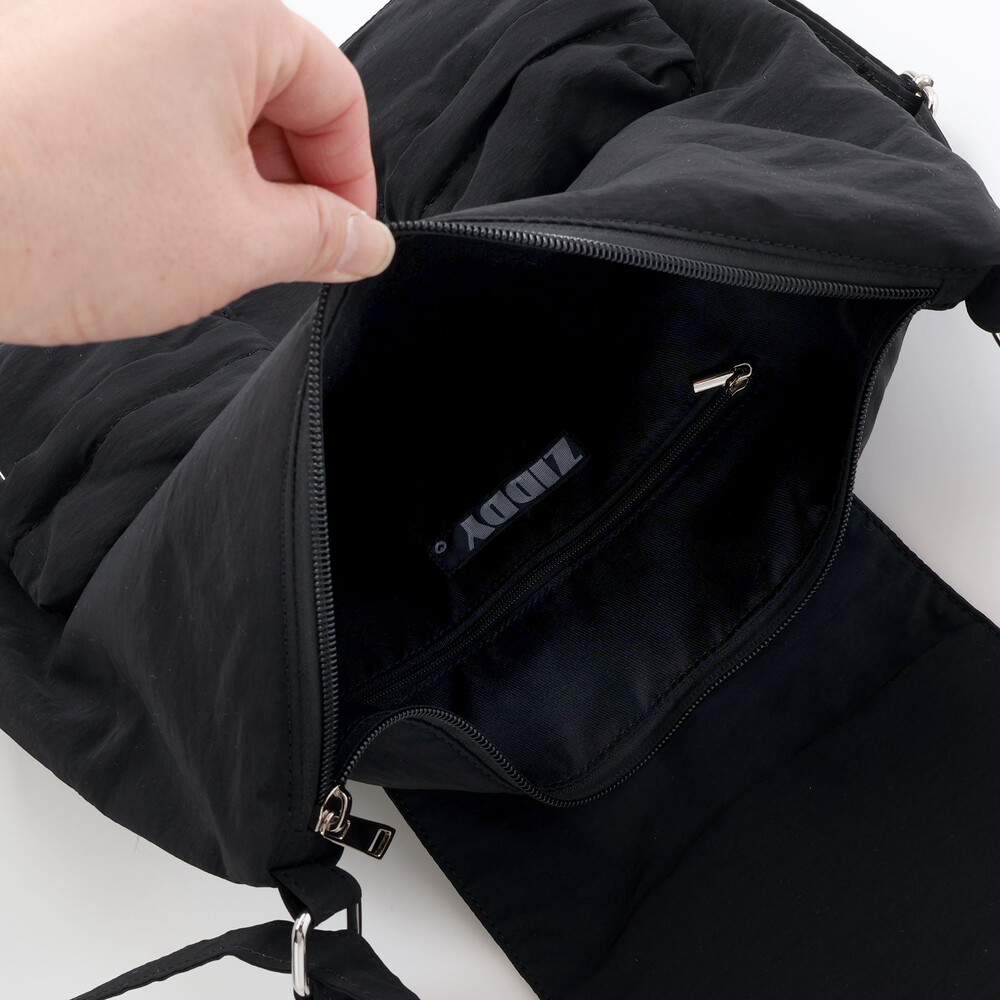 ファスナー内ポケットやブランドネーム入りポケットが荷物整理をさらに快適に。