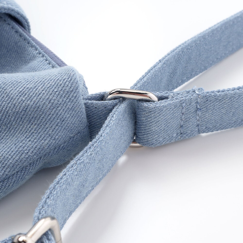 ブラックは軽量ナイロン、ブルーは綿混の柔らかいデニム調素材で、どちらもデイリー使い向き。