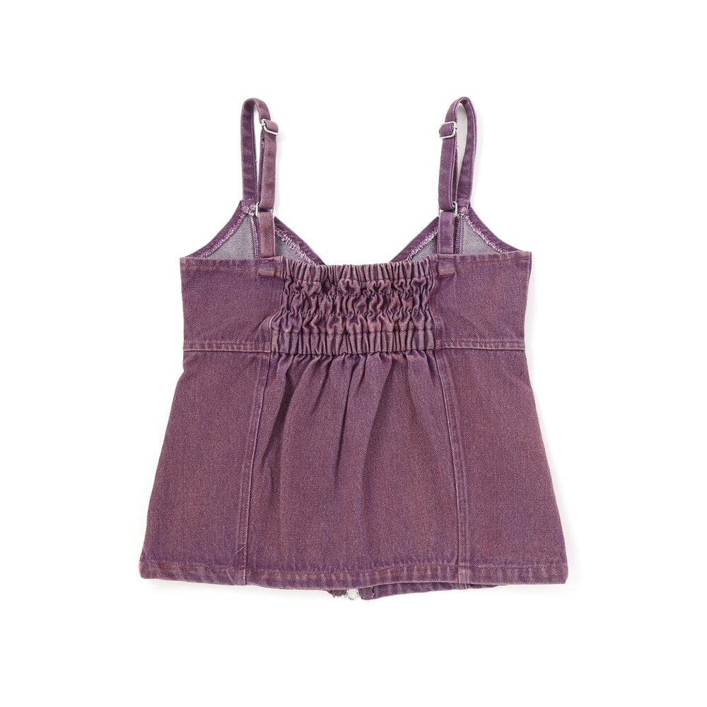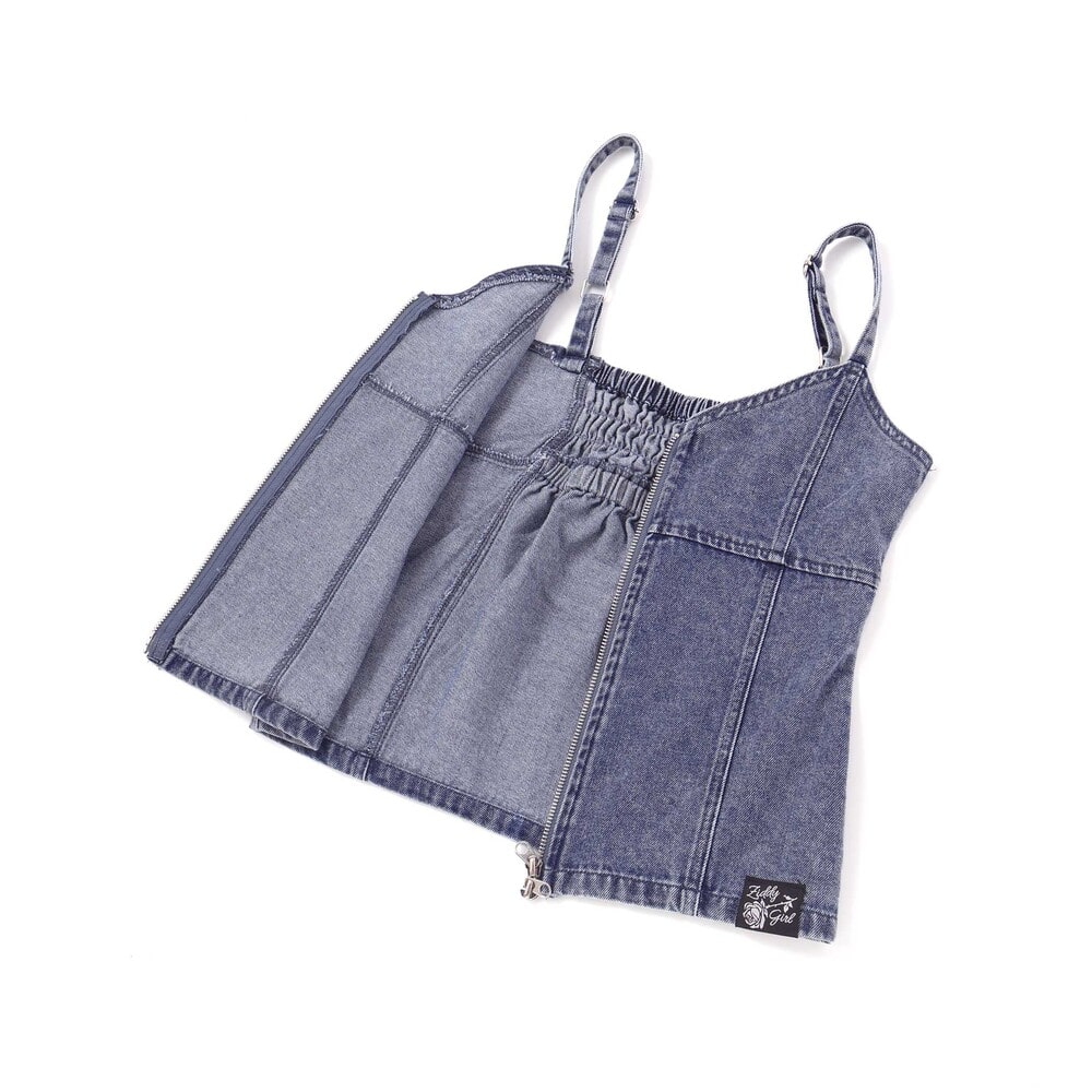 ビスチェ部分は軽めのデニムタッチ素材で、春夏でも快適なさわやか着心地。