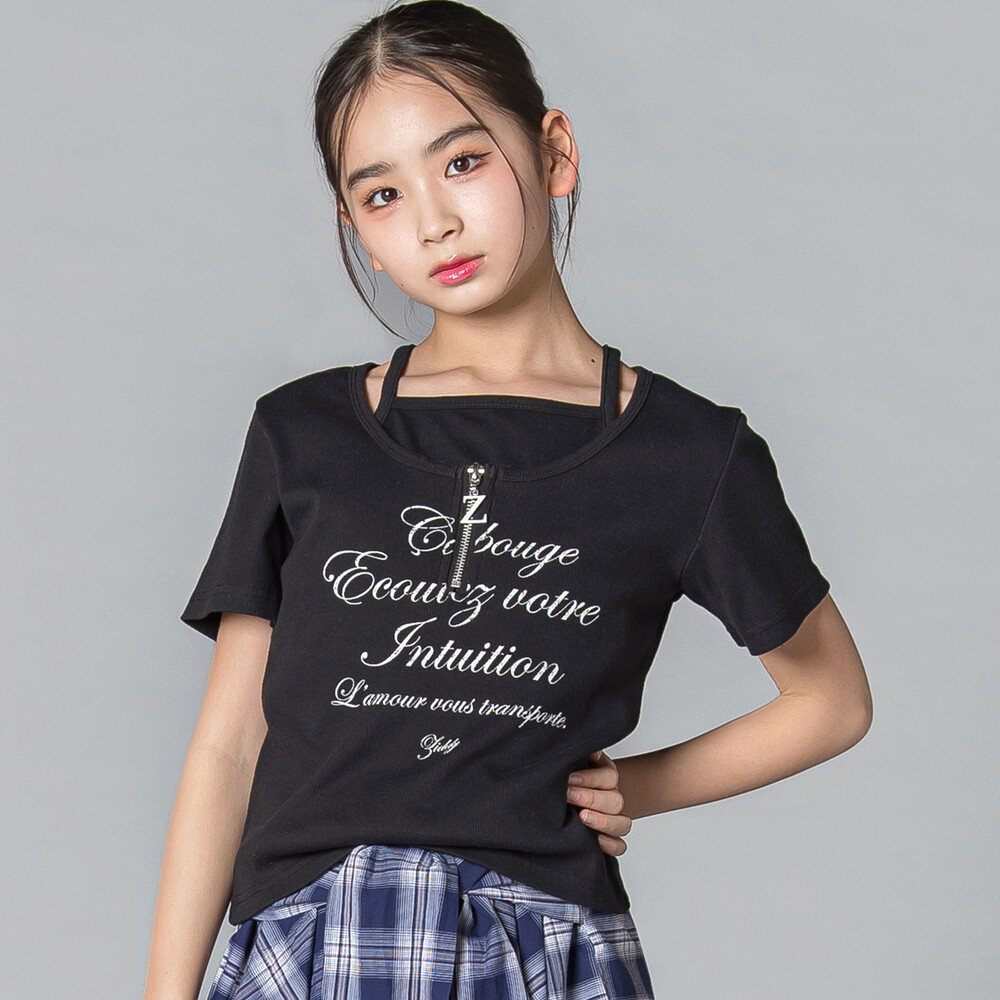 肩のランニングをドッキングした抜け感シルエットで、今年らしいこなれ感が出るトップス。