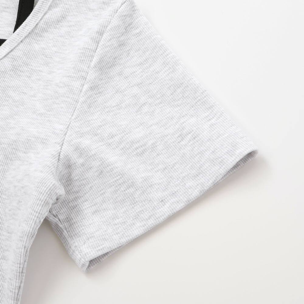 細かな凹凸がかわいいテレコ素材を使用し、伸びが良くて動きやすいのにシルエットはきれい見え。
