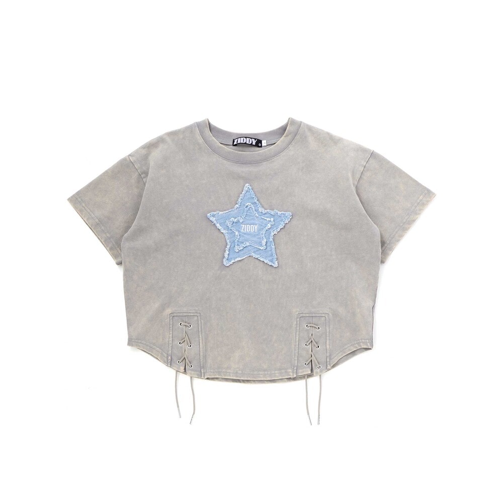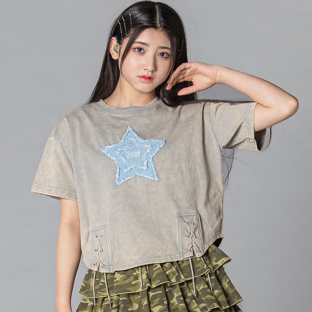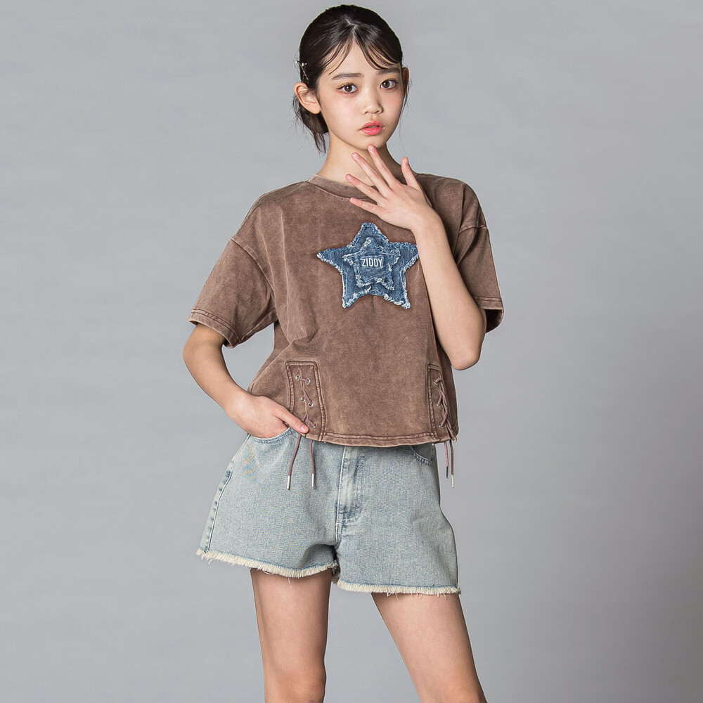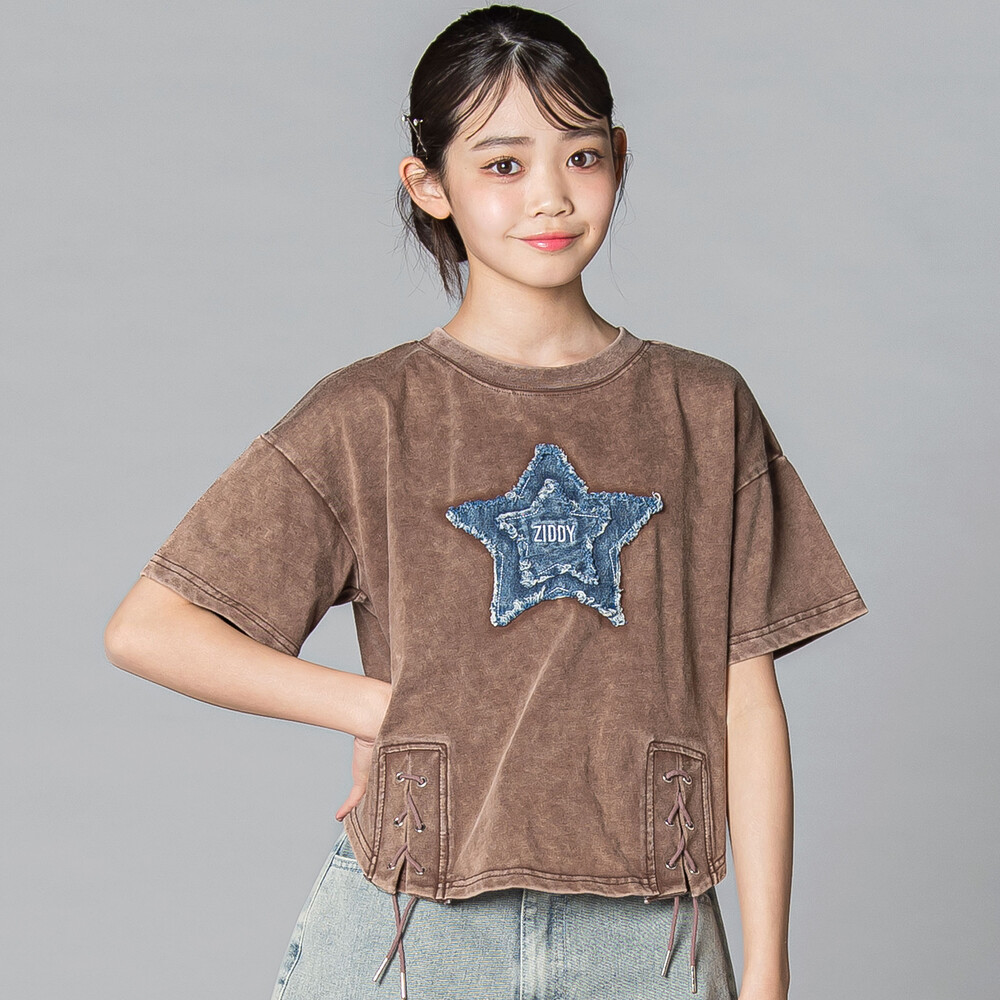 星×デニム×むら染めでつくる、最旬ストリートガール半袖Tシャツ。