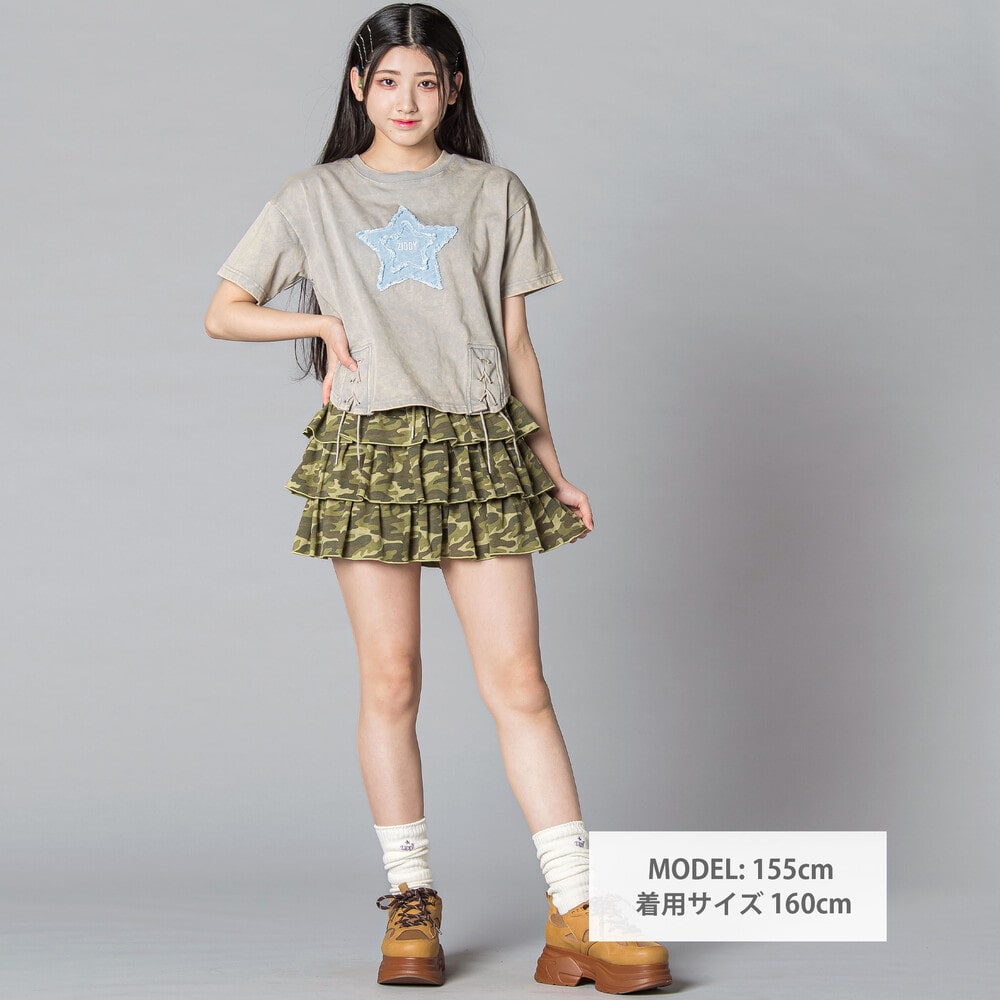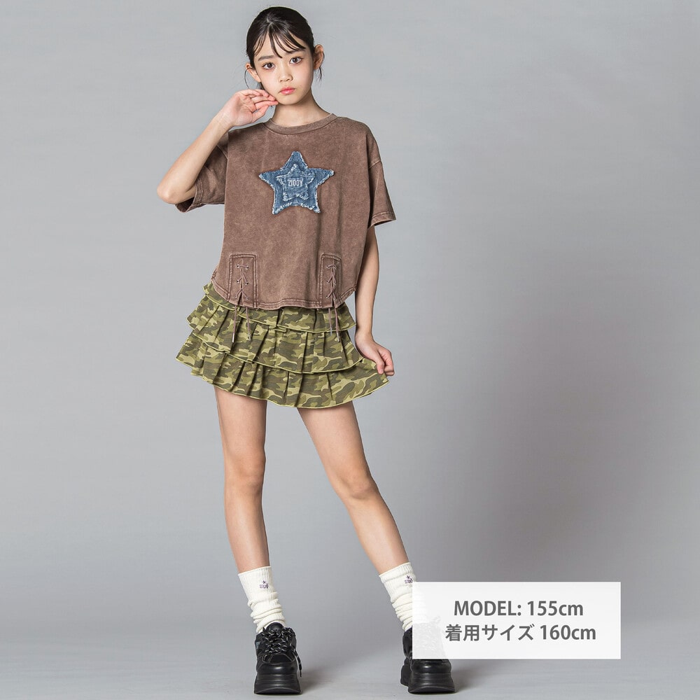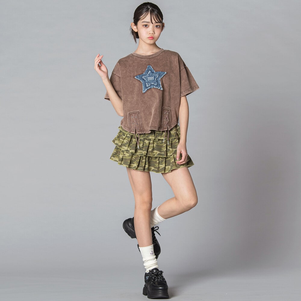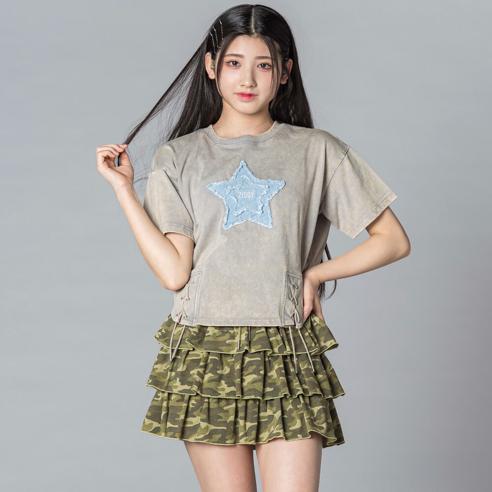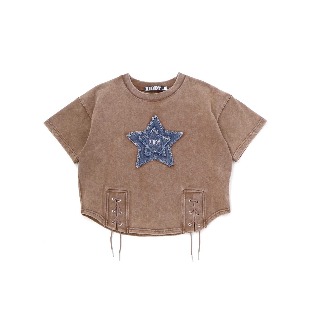 星×デニム×むら染めでつくる、最旬ストリートガール半袖Tシャツ。