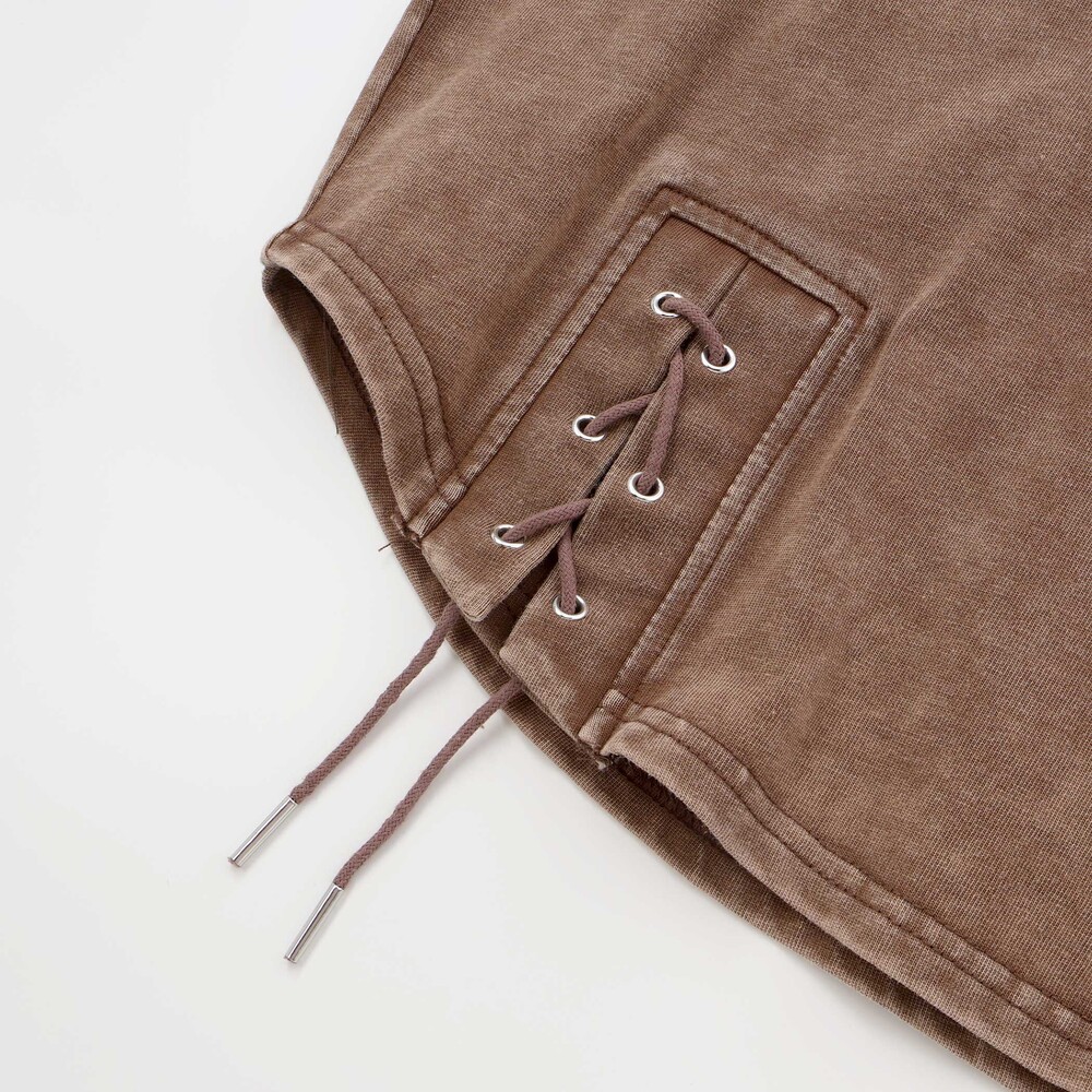 ウエスタンライクなレースアップがコーデにスパイスをくれて、ブラウンは大人っぽギャル、グレーはさわやか推しのカラー。