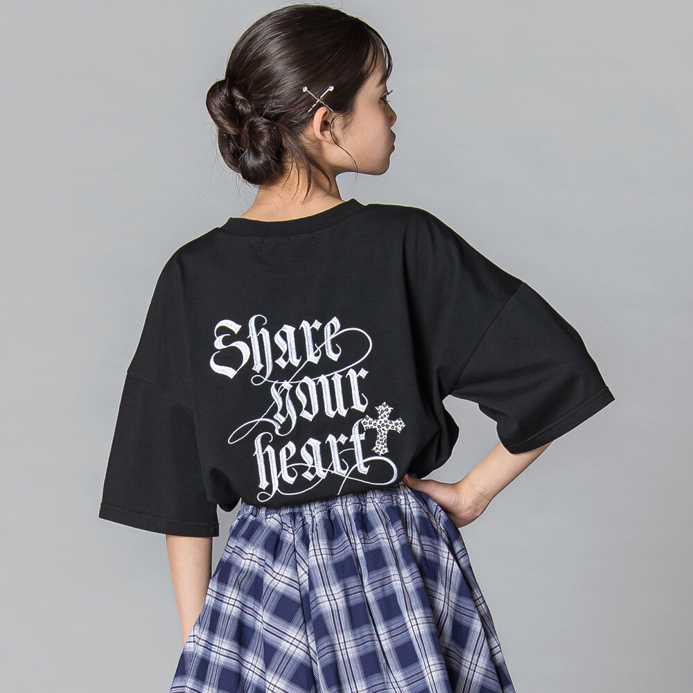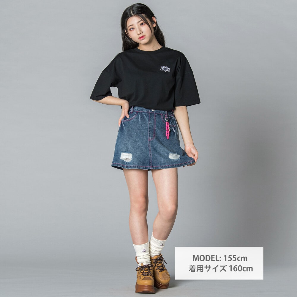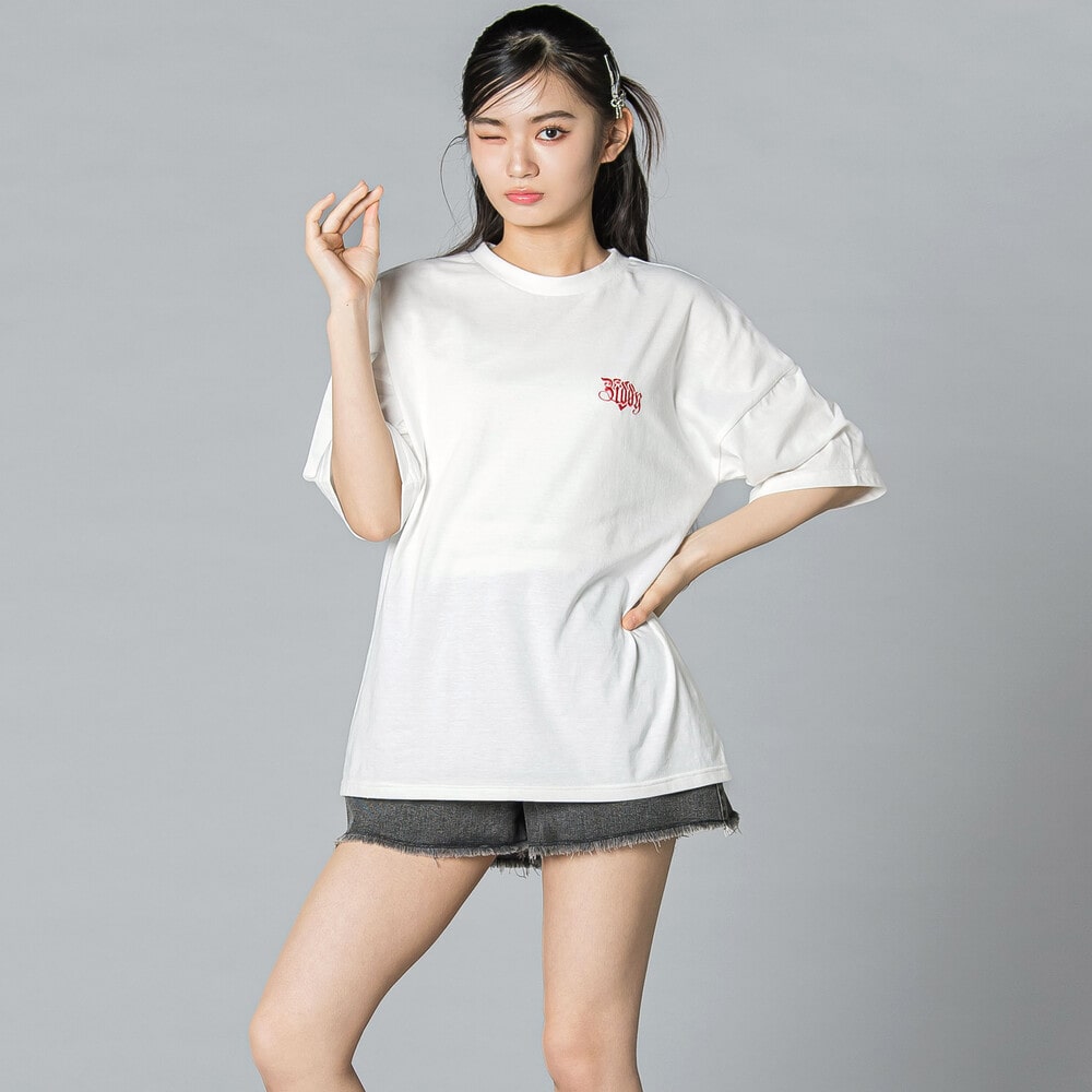 バックの大きめロゴ&刺しゅうがストリート感と女っぽさを両立。