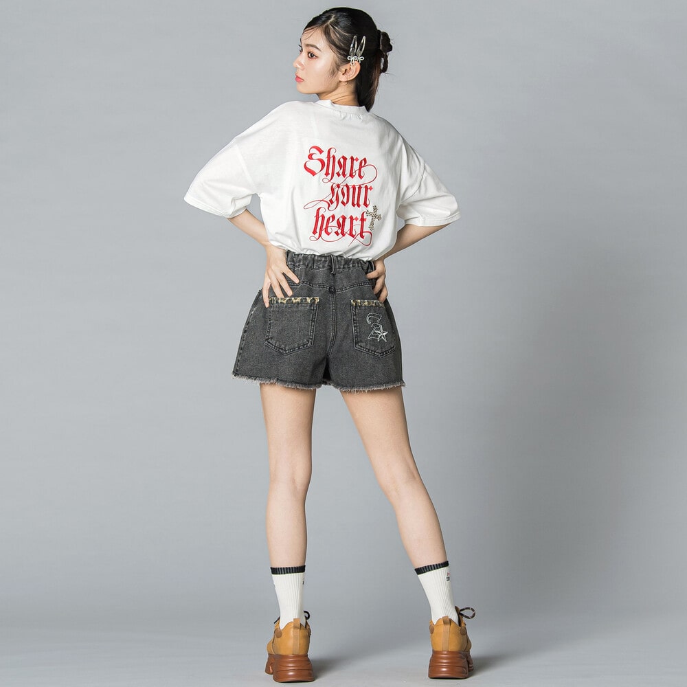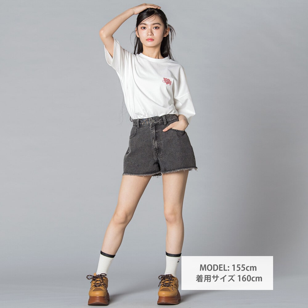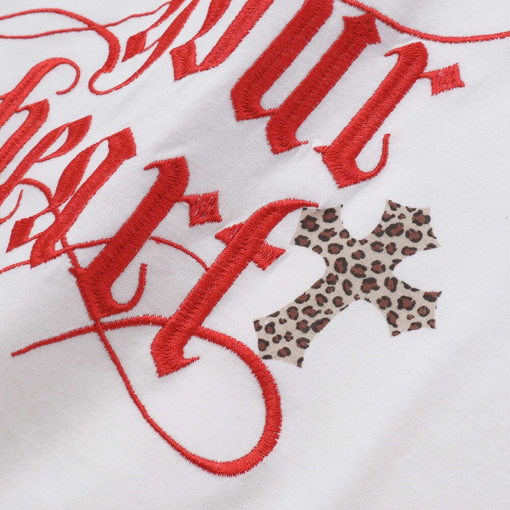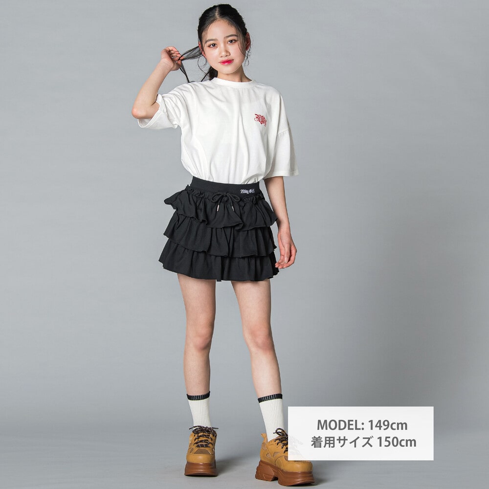 バックの大きめロゴ&刺しゅうがストリート感と女っぽさを両立。