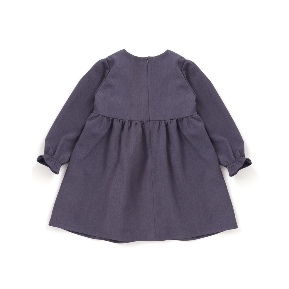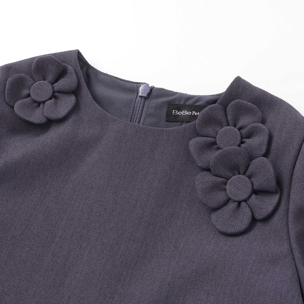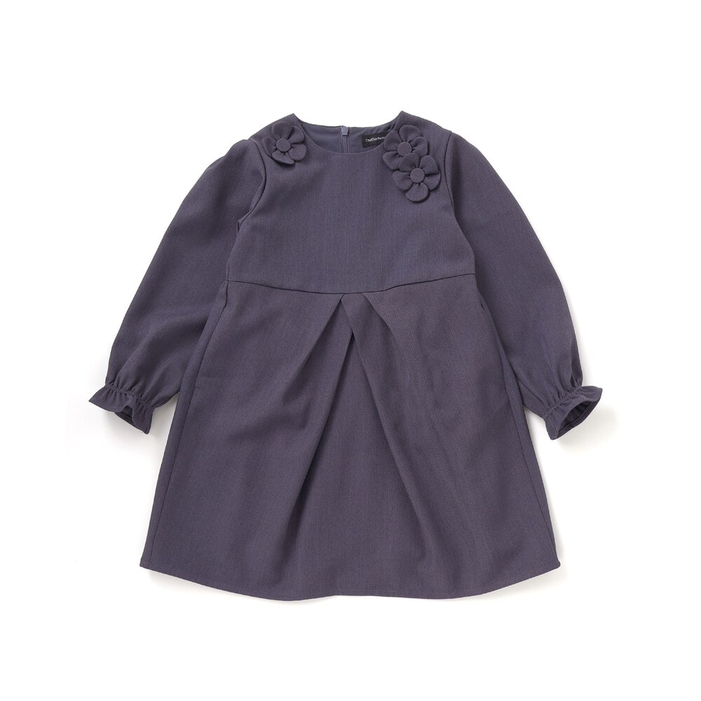 襟元の立体的な花モチーフが印象的な長袖ワンピース。