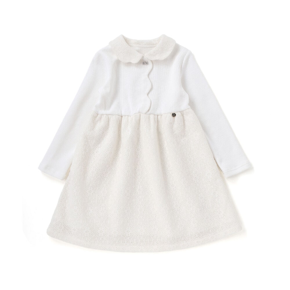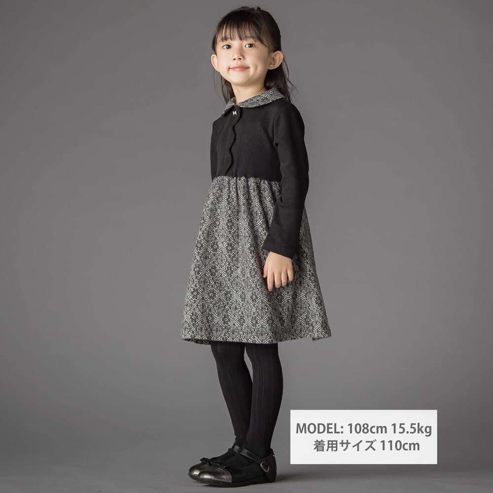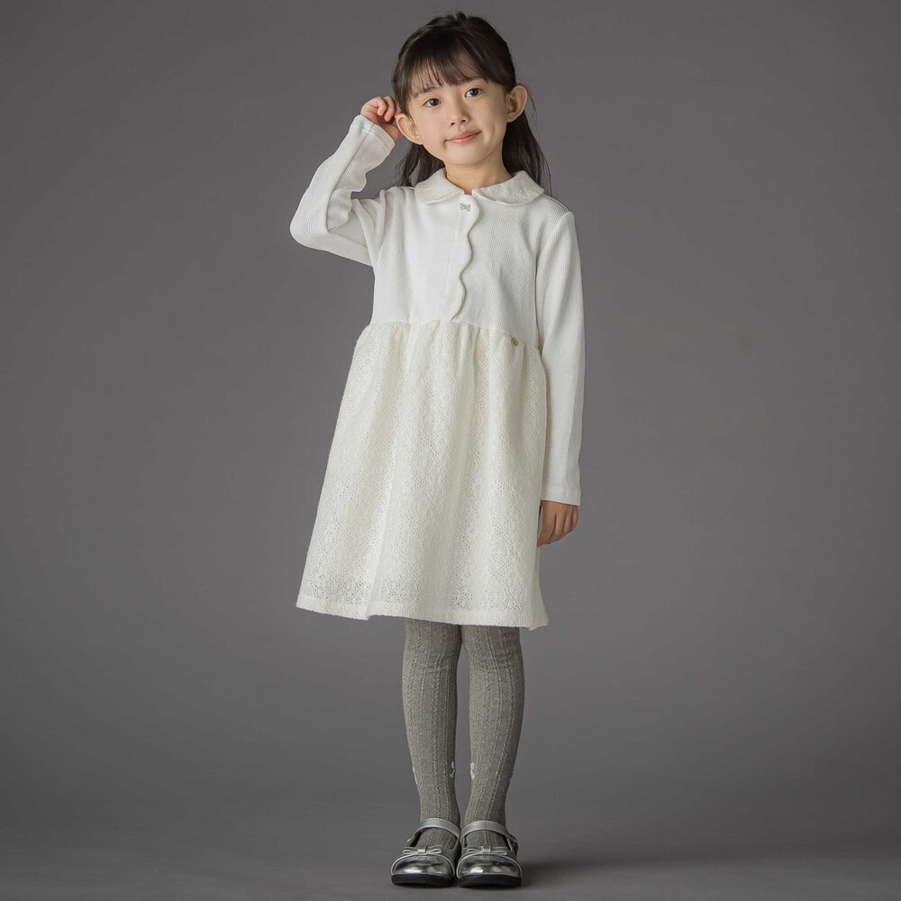 襟とスカート部分のレース起毛素材がかわいい1着です。