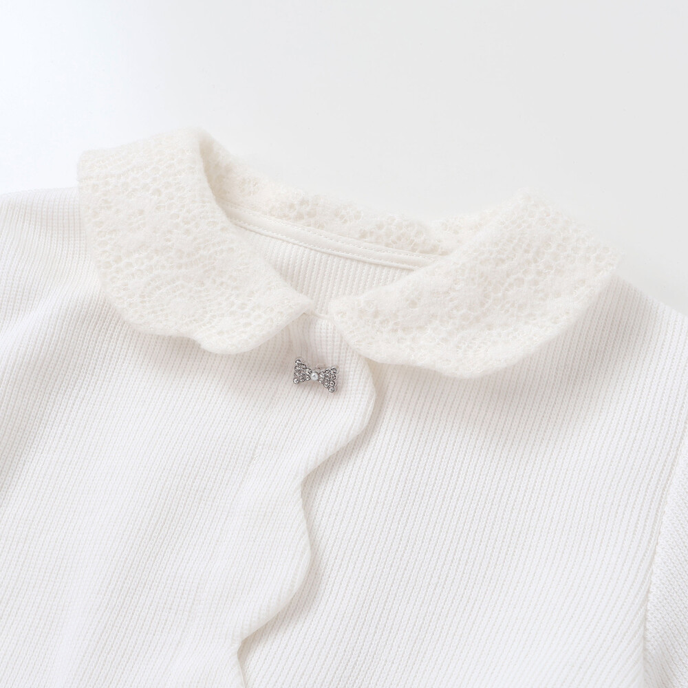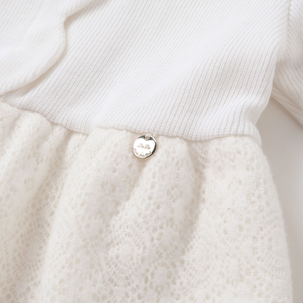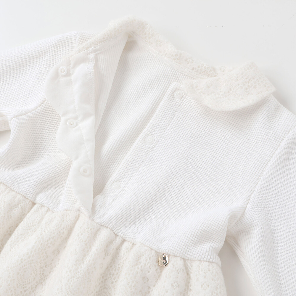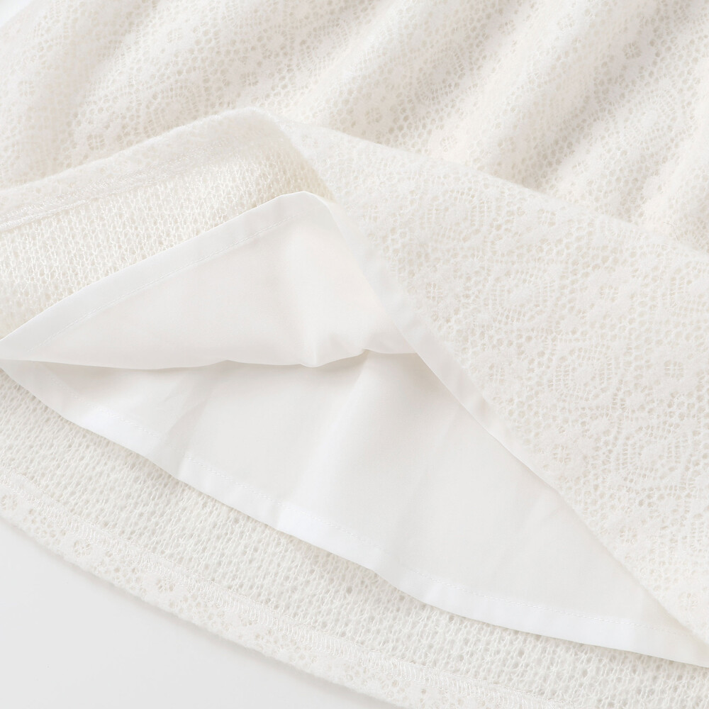 襟とスカート部分のレース起毛素材がかわいい1着です。