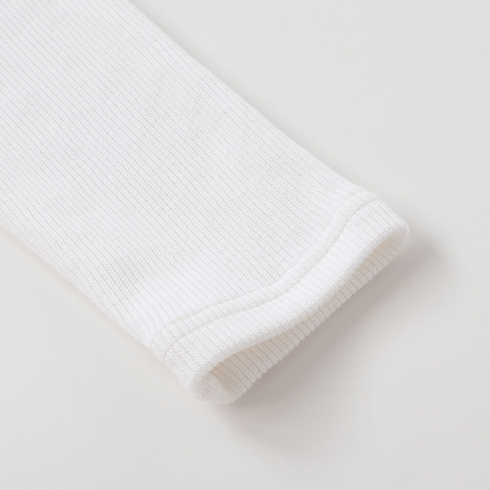 伸縮性のあるニットリブと温かみのあるレース起毛を切り替えています。