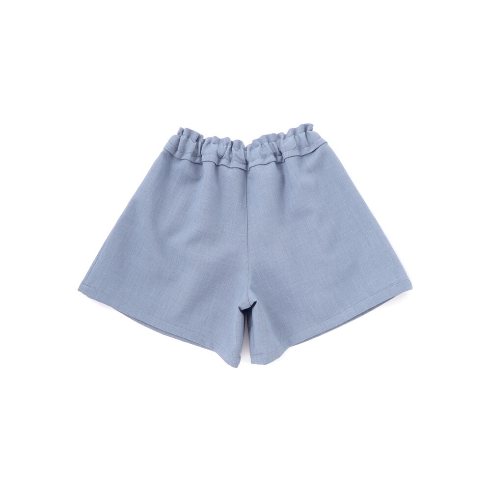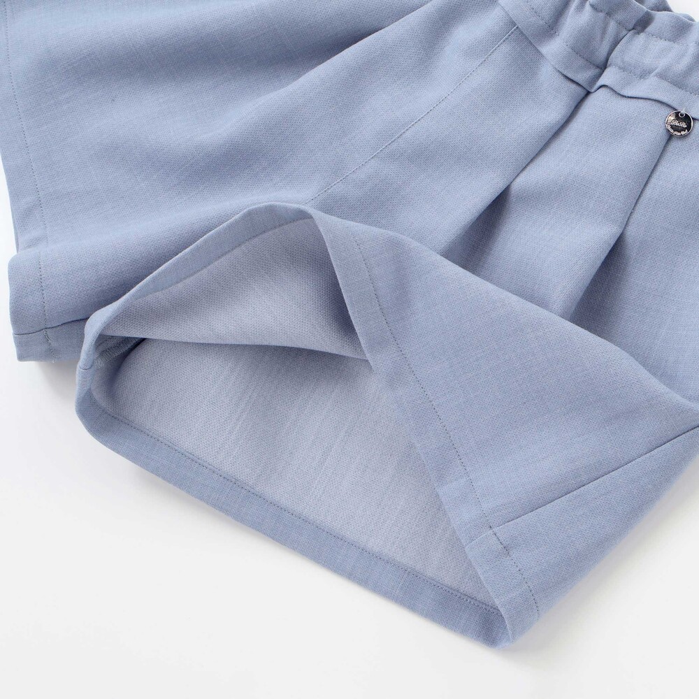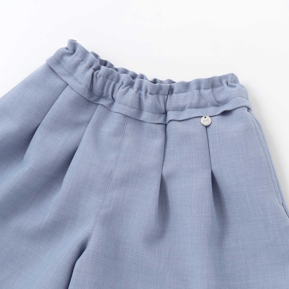 ボトムスは動きやすいキュロットタイプで、ふんわりとしたシルエットが女の子らしさを引き立てます。
