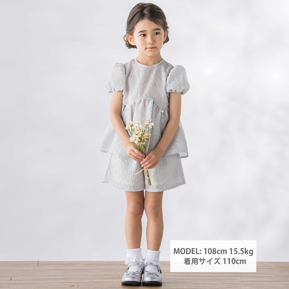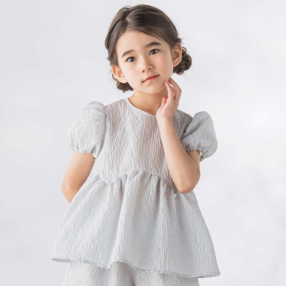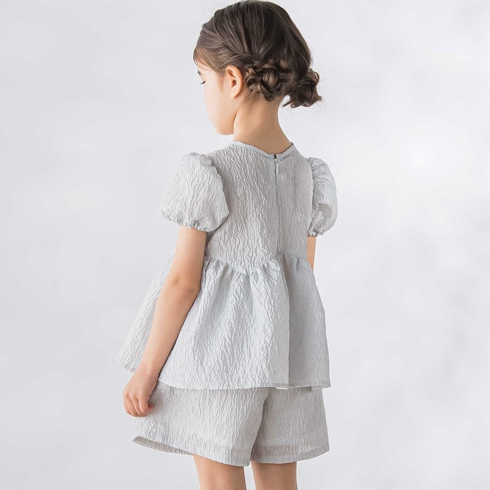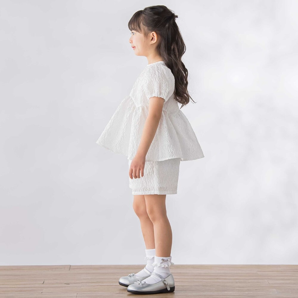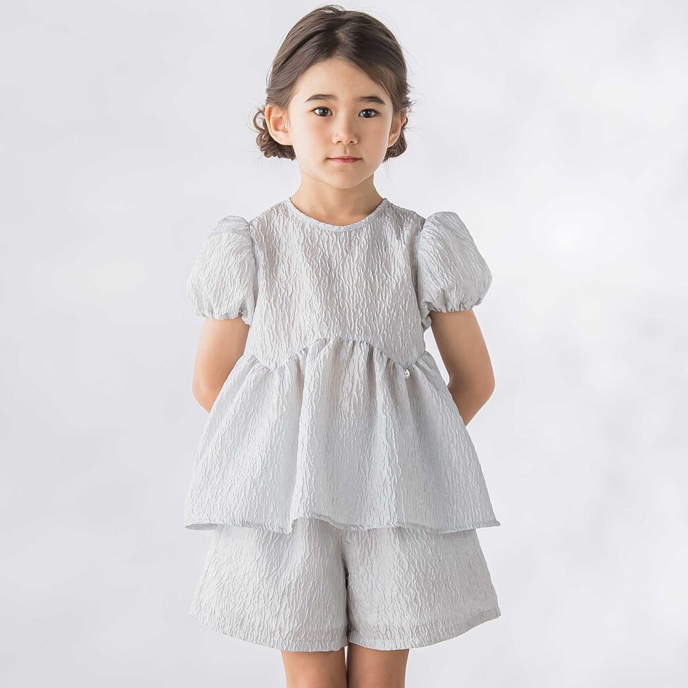 動くたびにきれい、ジャガードならではの上品な存在感を纏う、女の子用セットアップ。