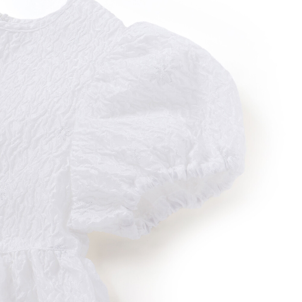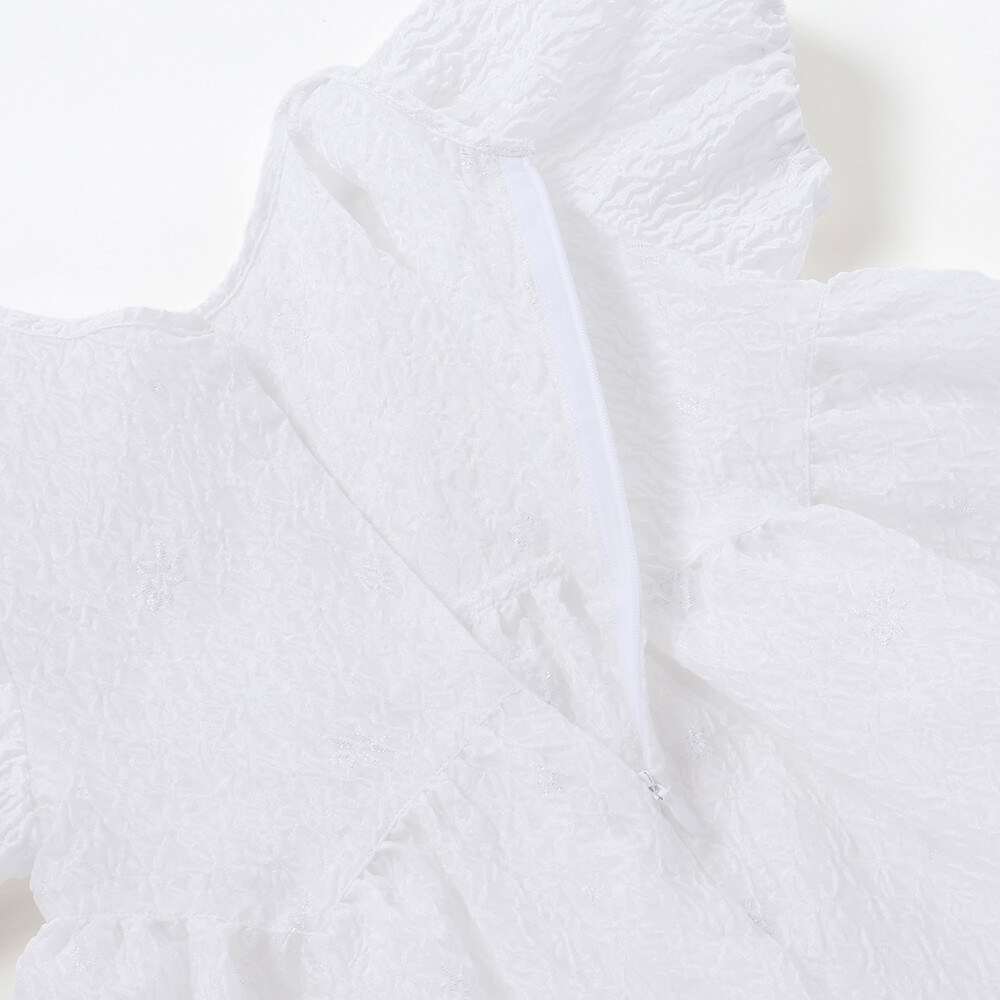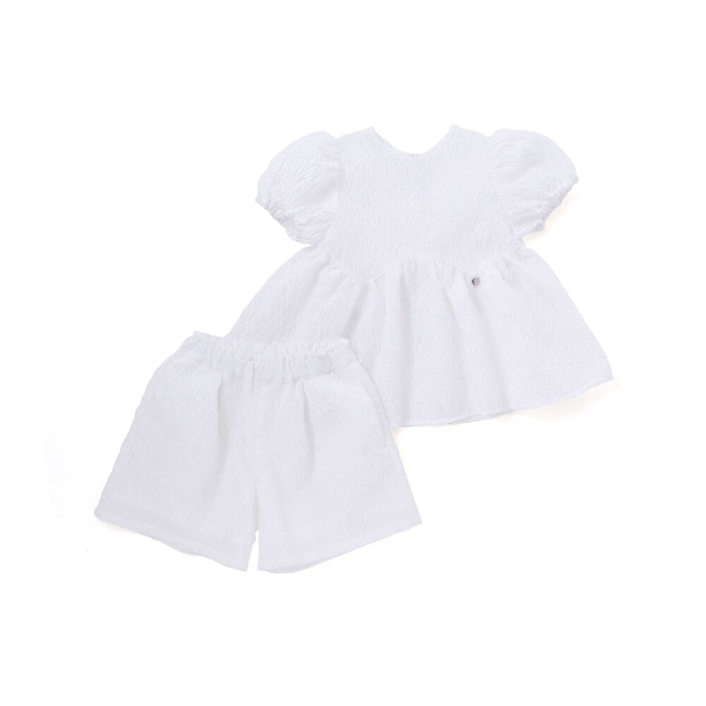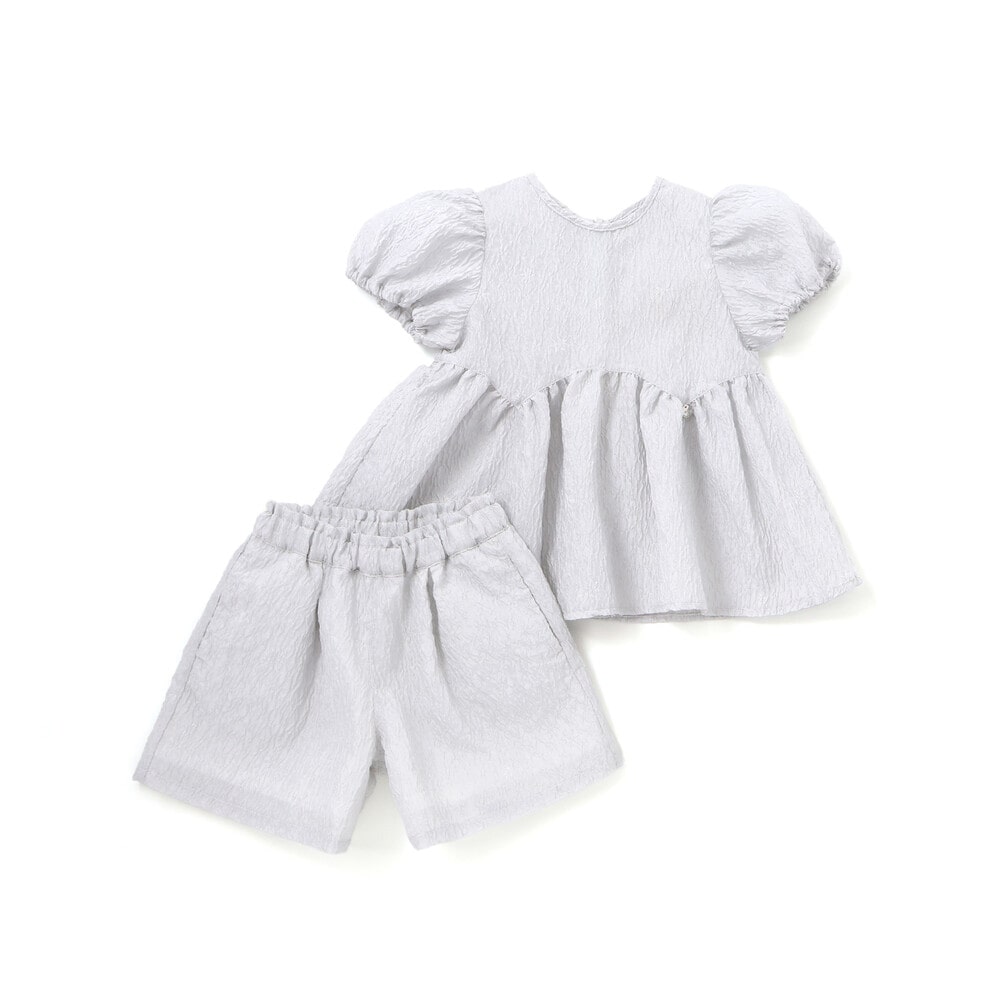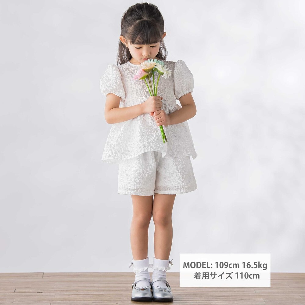 動くたびにきれい、ジャガードならではの上品な存在感を纏う、女の子用セットアップ。