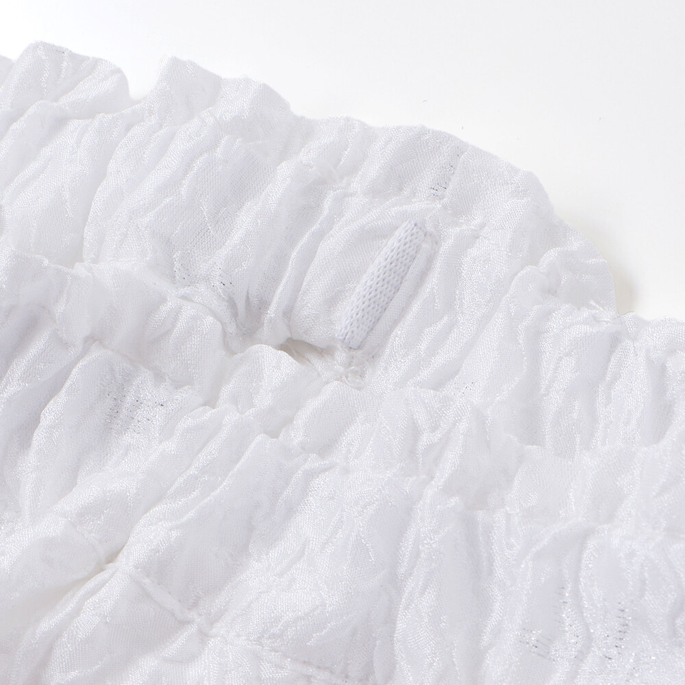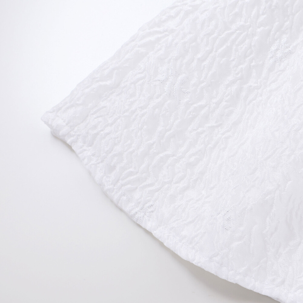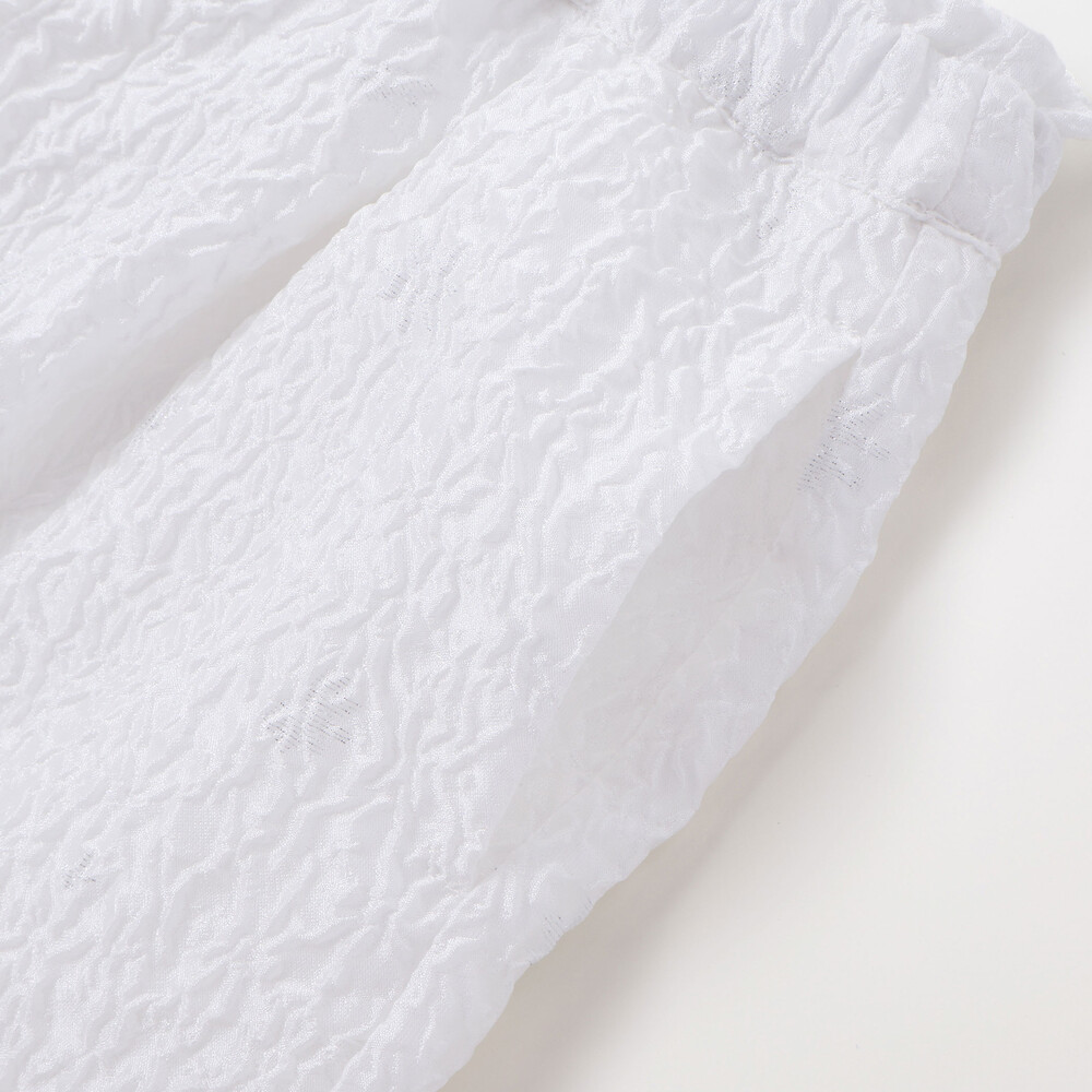 トップスは軽やかで強度のあるポリエステル100%のキラジャガード素材を使用し、動くたびにきらめく高級感ある表情が魅力。