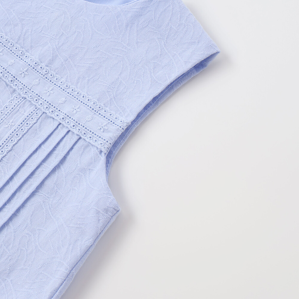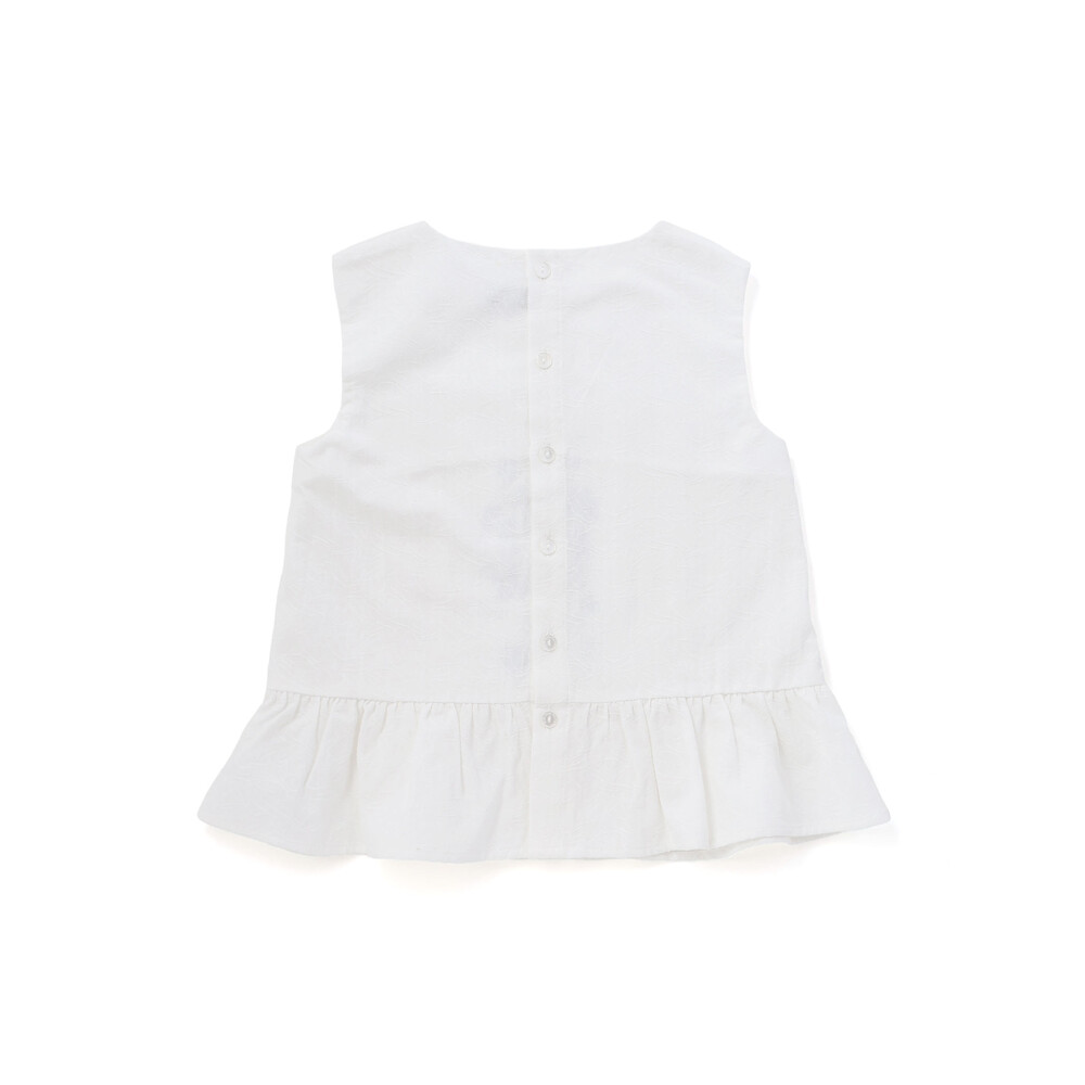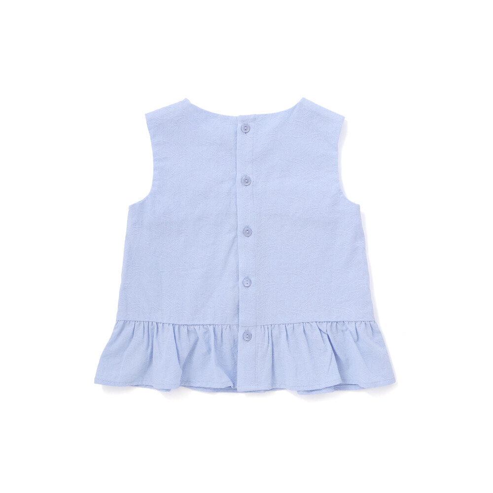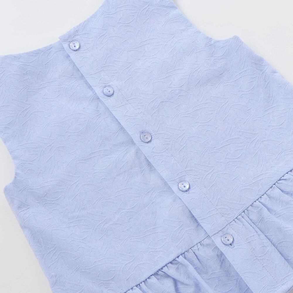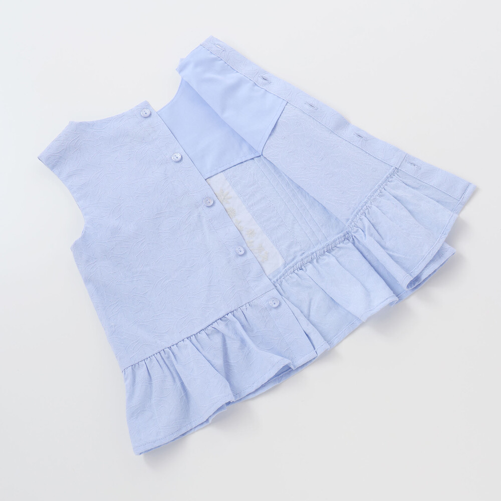 白蝶風ボタンが後ろに並び、ちいさなレディにぴったりのきちんと感を添えます。