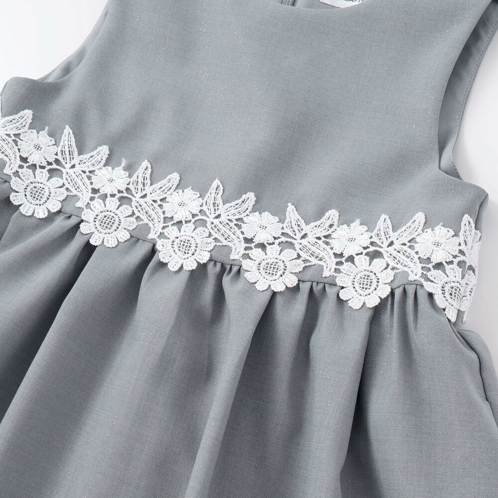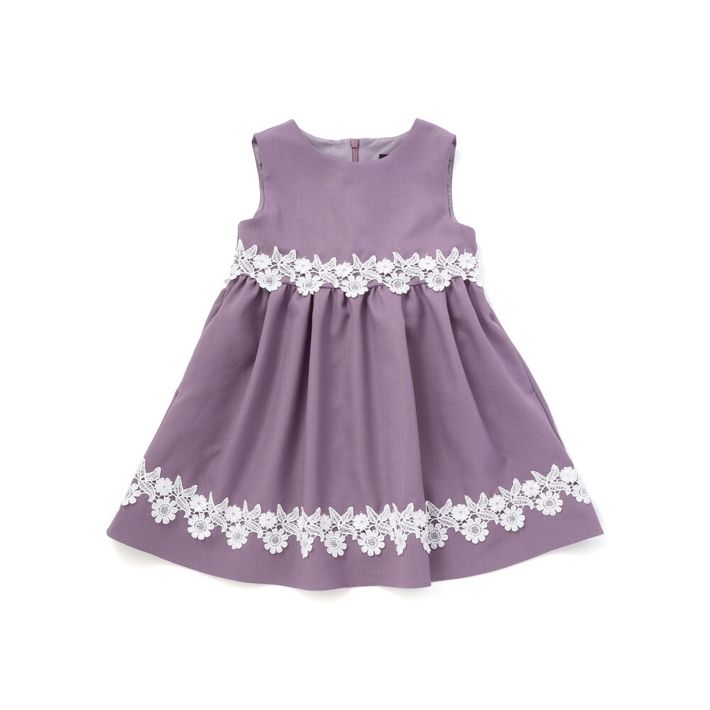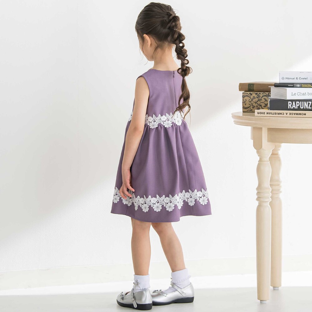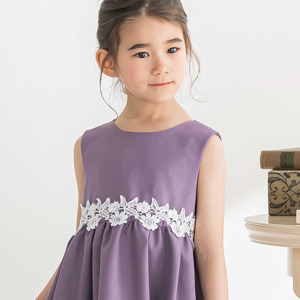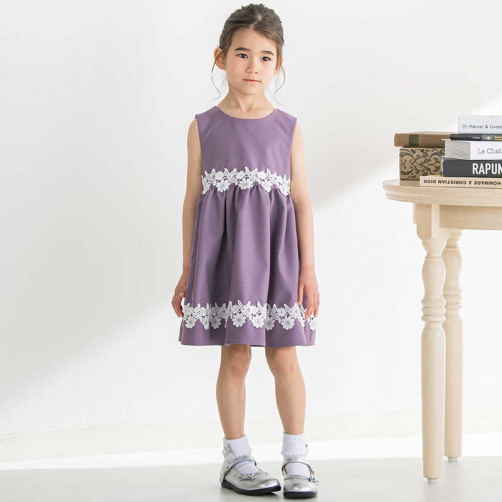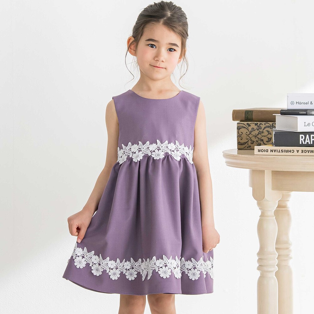 シンプルなシルエットに華やかなレースをたっぷり添え、ナチュラルで上品な印象に仕上げたジャンスカ。