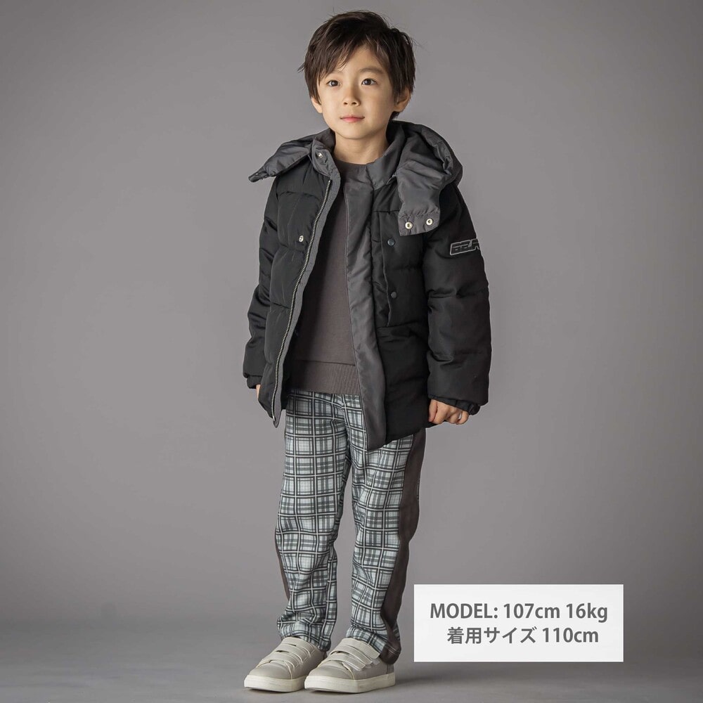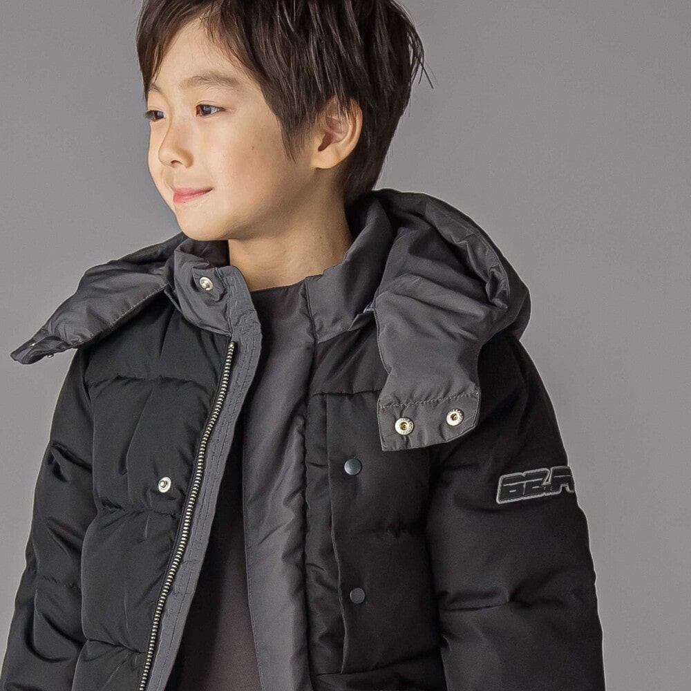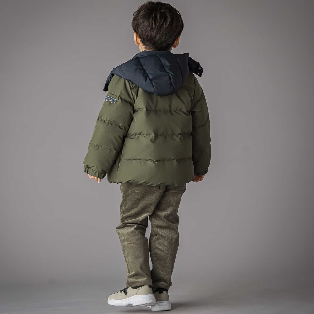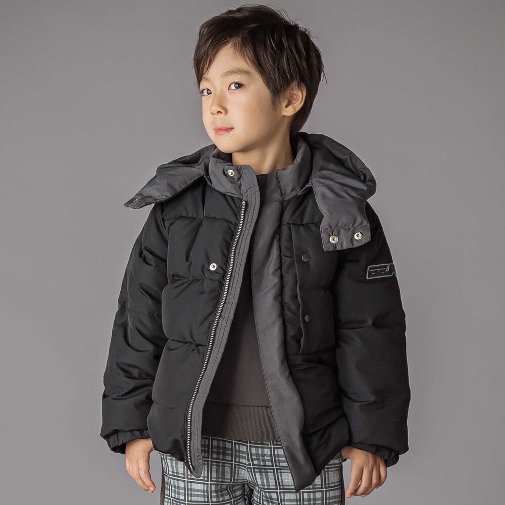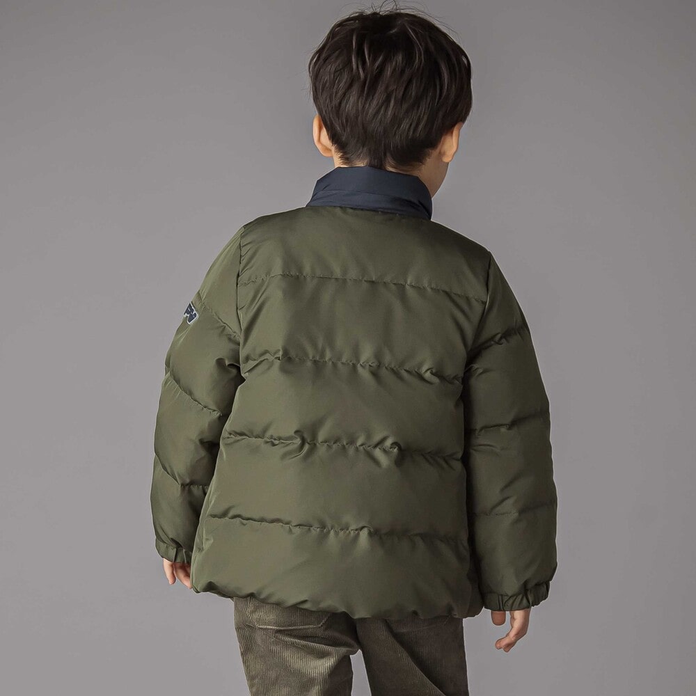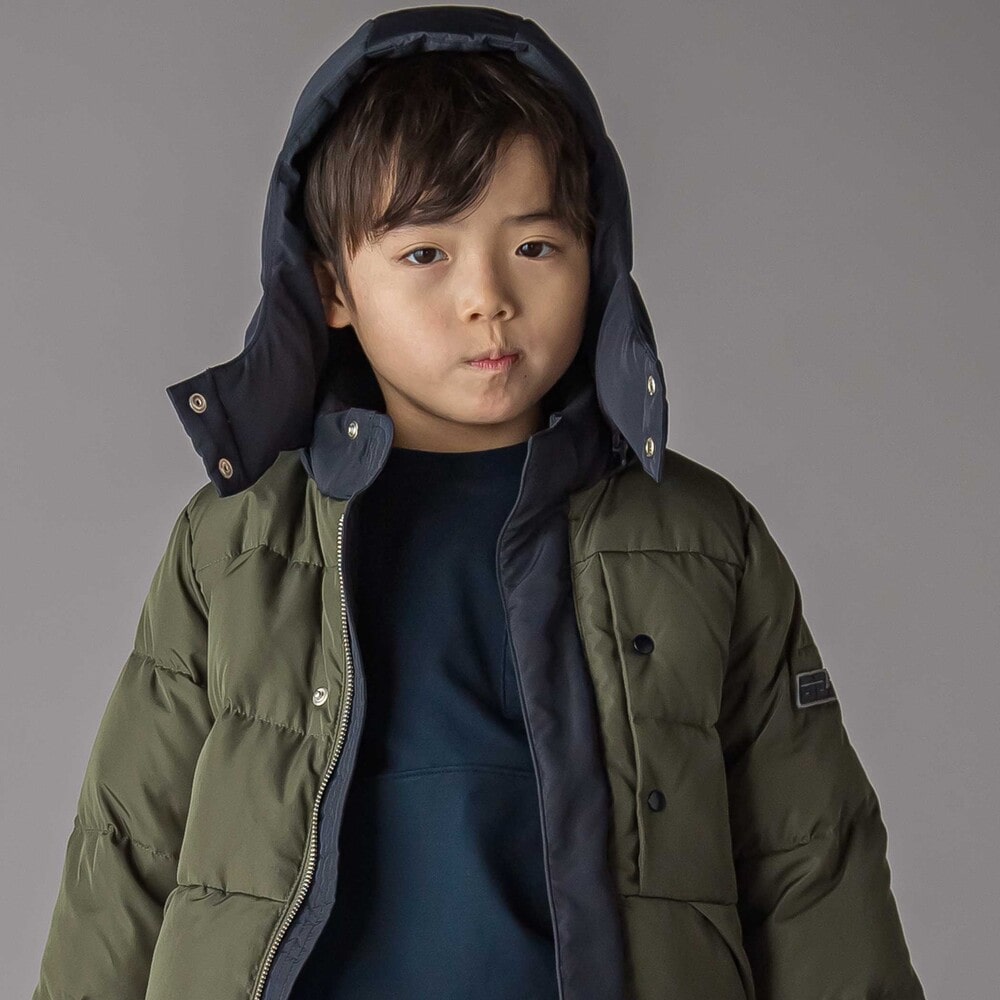 配色が男の子らしい印象のダウンジャケット。