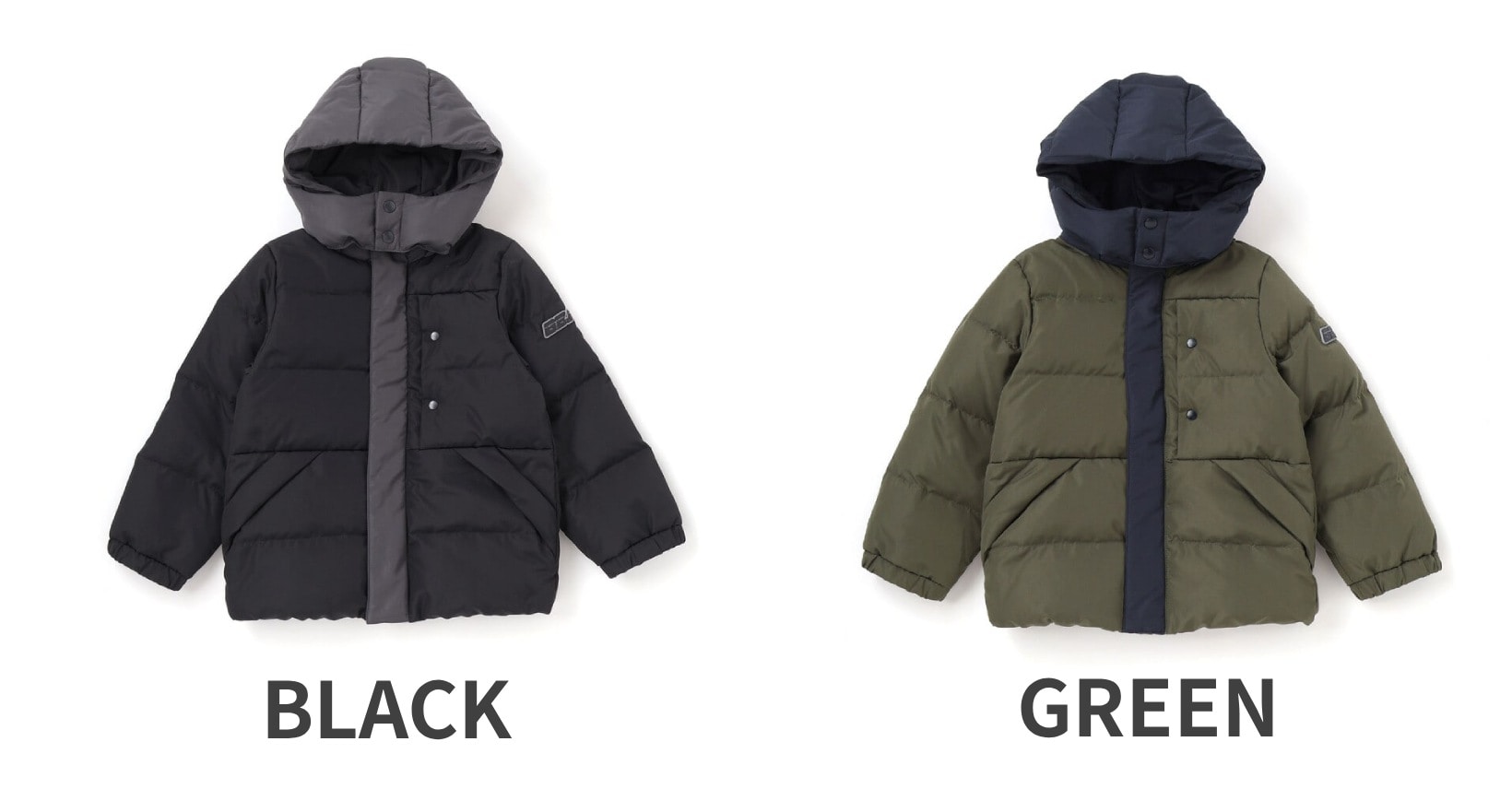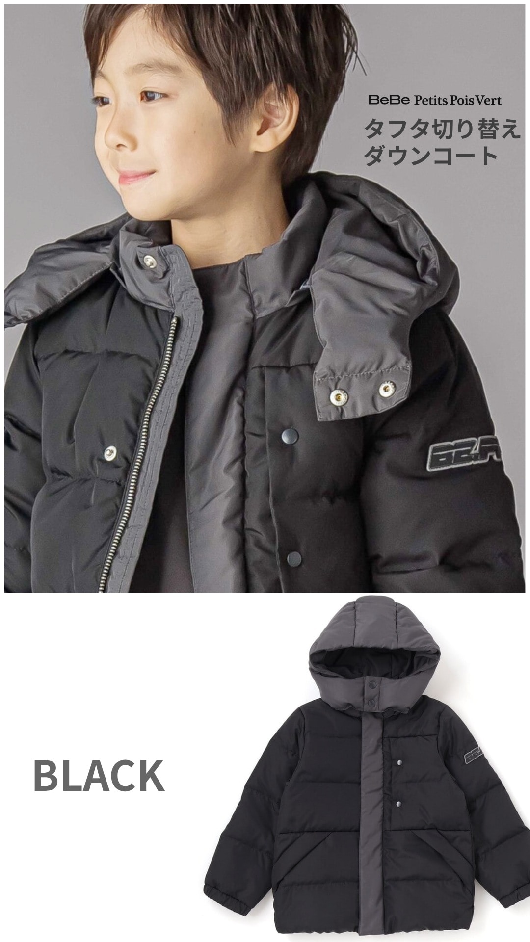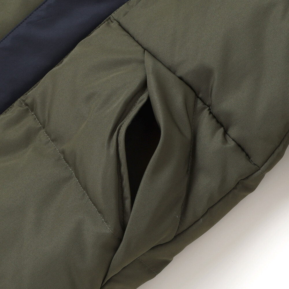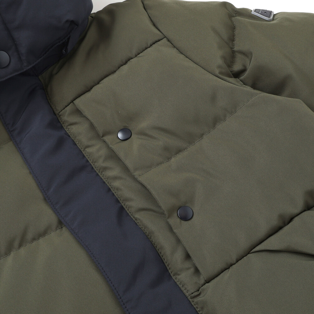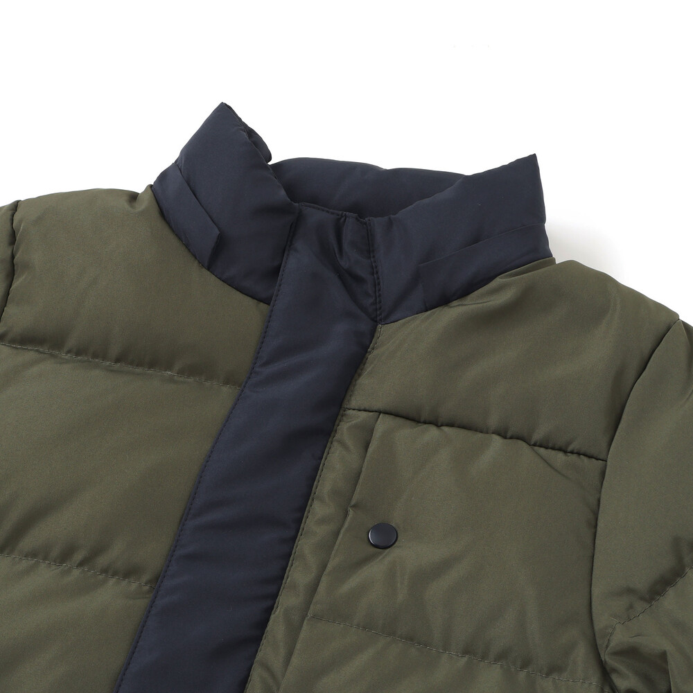 配色が男の子らしい印象のダウンジャケット。
