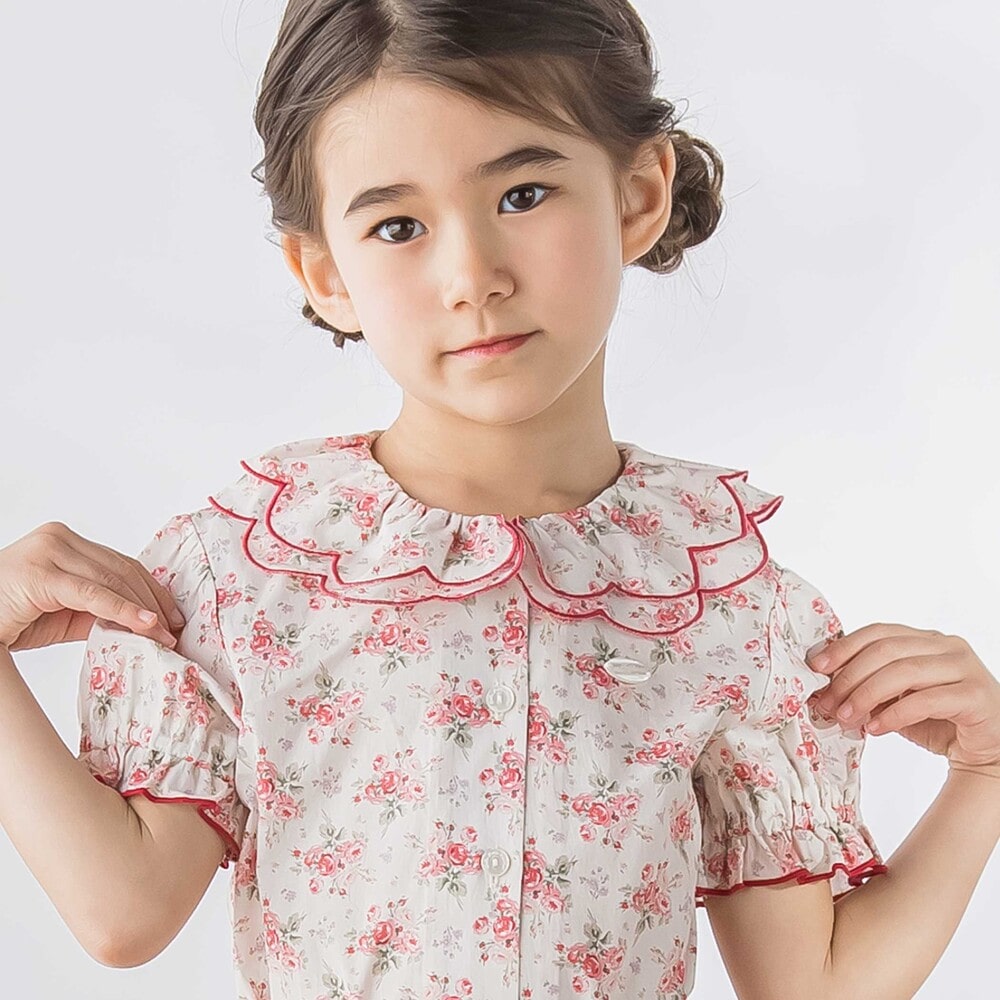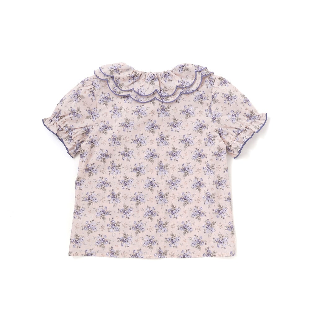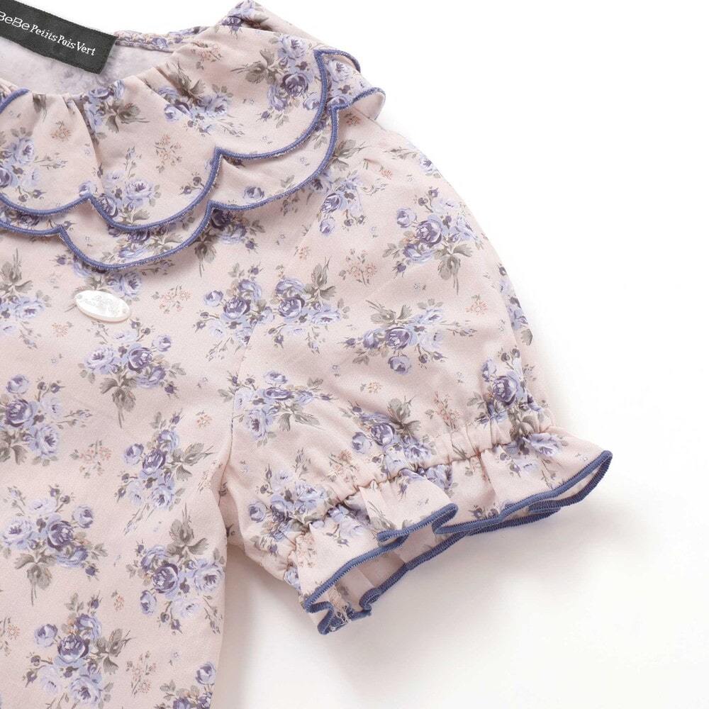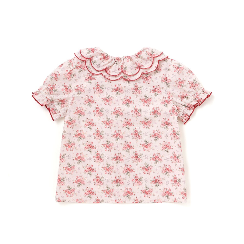繊細なバラ柄が可愛らしい、上品な半袖ブラウス。