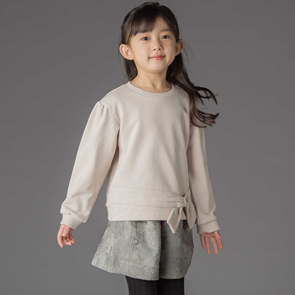 裾のリボンが可愛い裏毛長袖トレーナー。