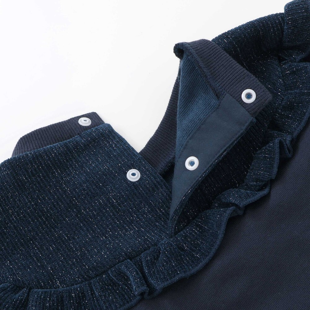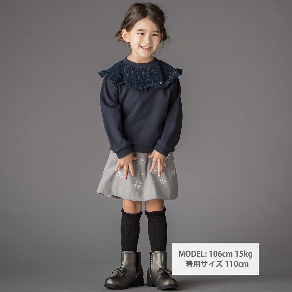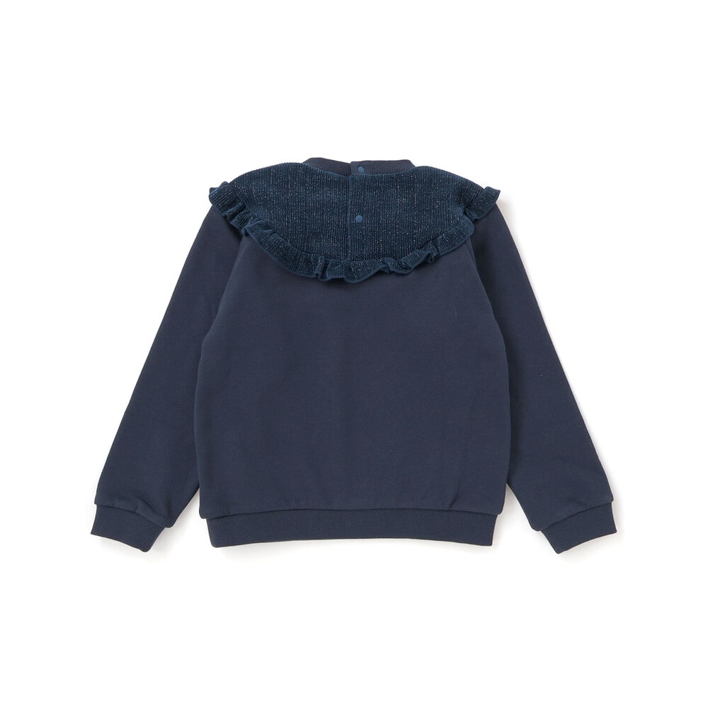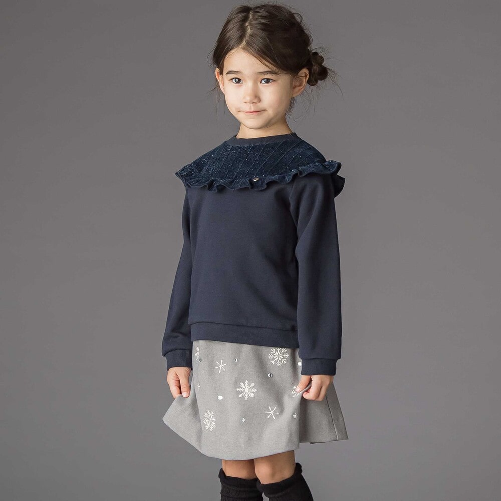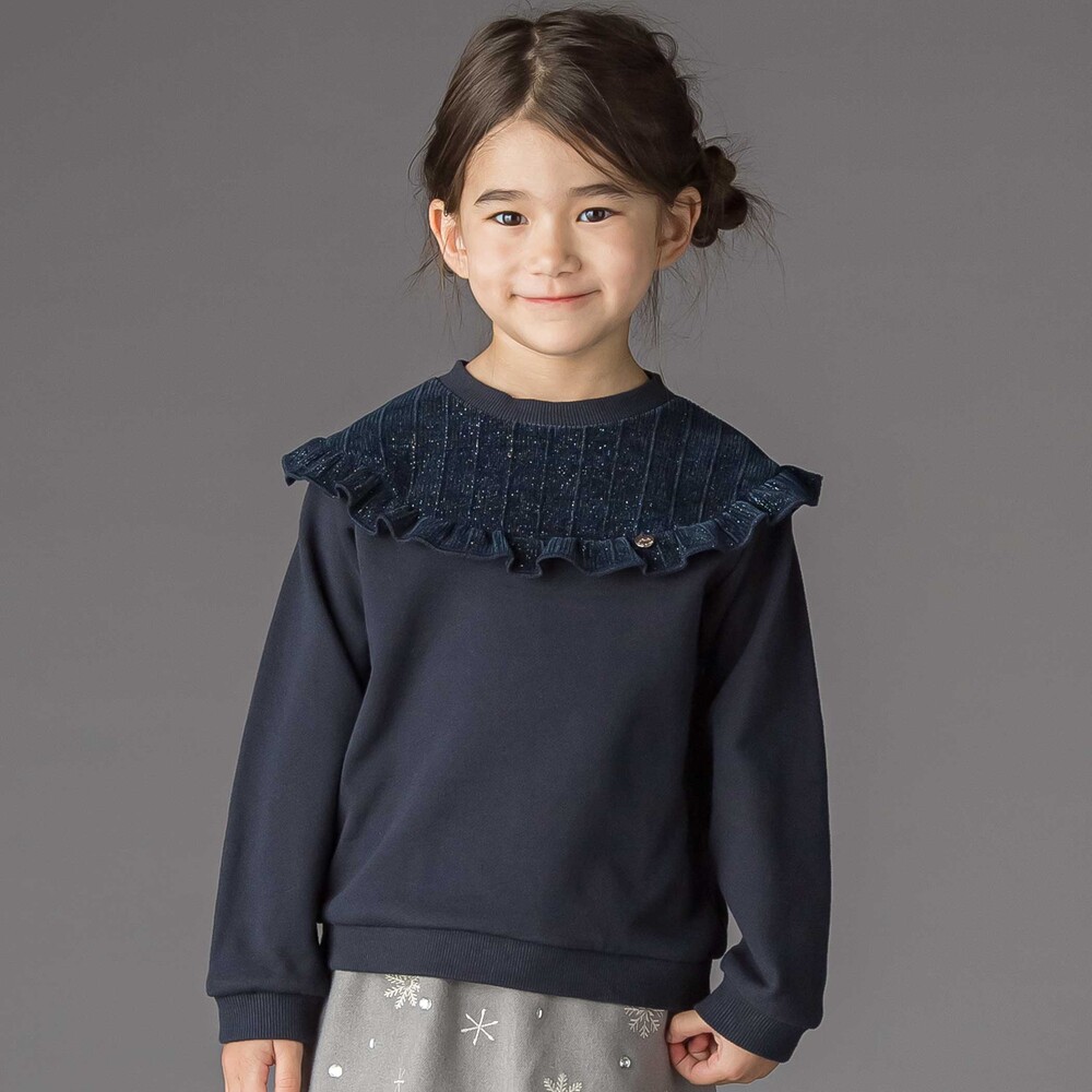 ラメ起毛のヨーク切り替えが目を引く女の子らしいトレーナー。