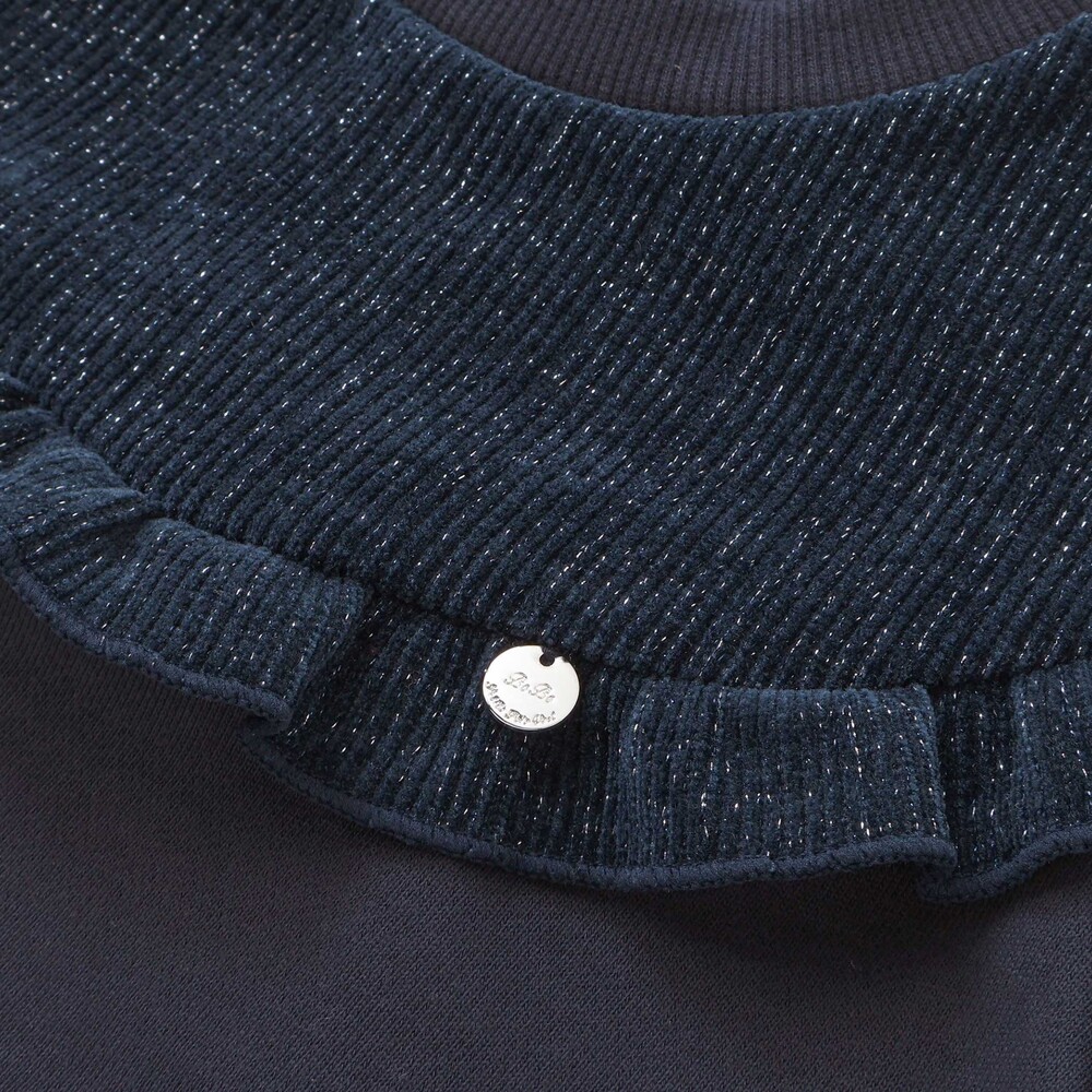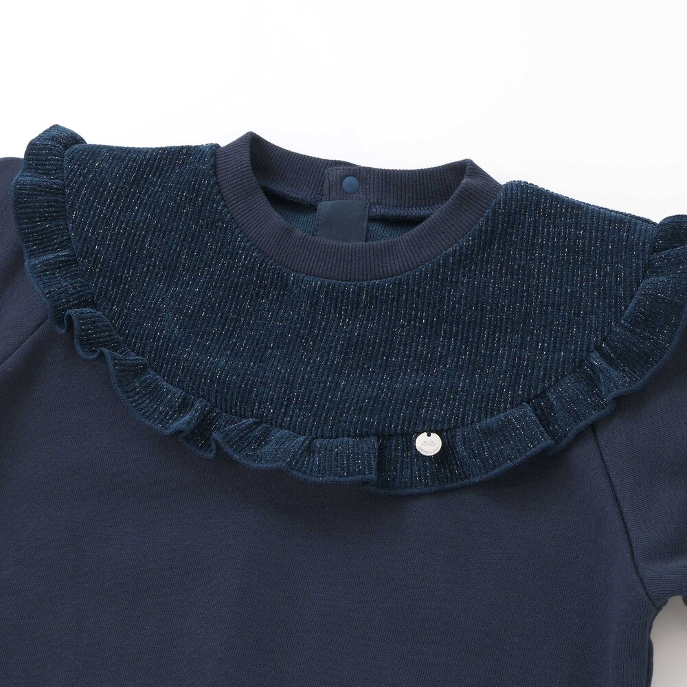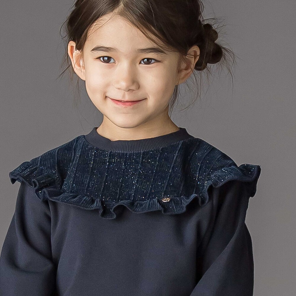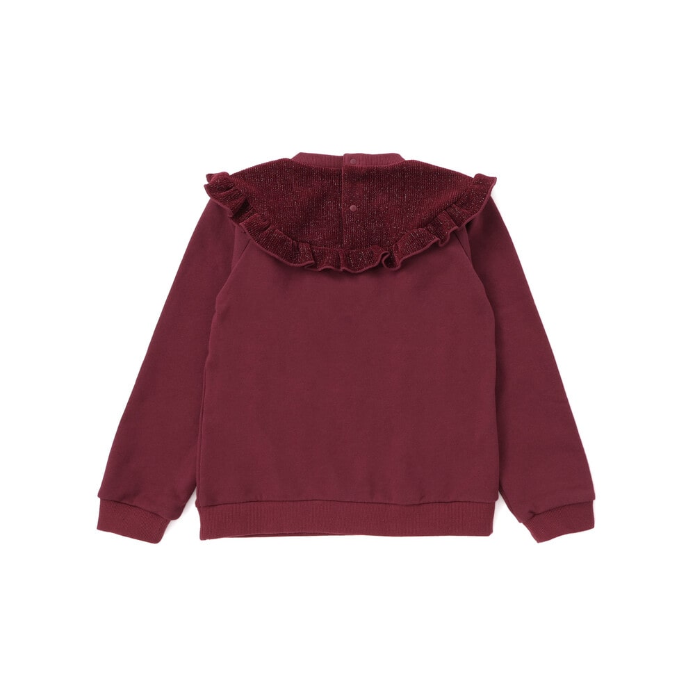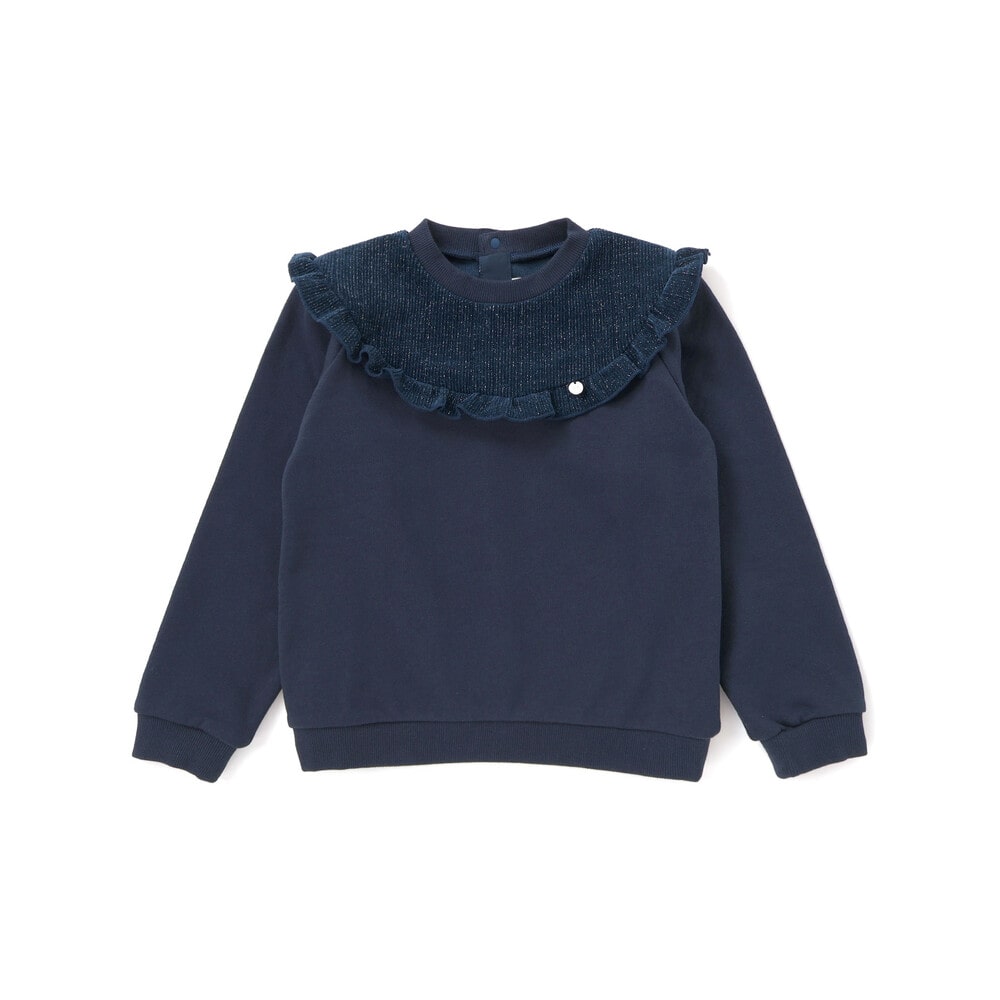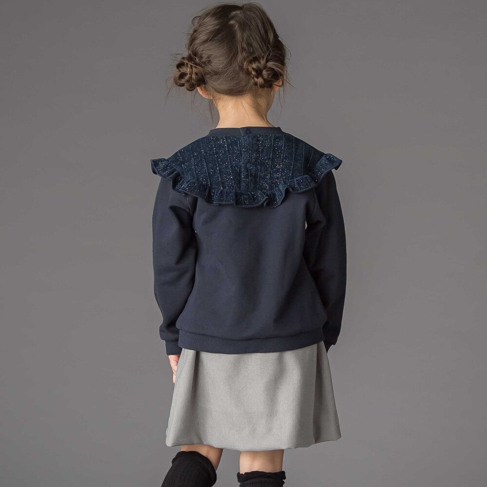ラメ起毛のヨーク切り替えが目を引く女の子らしいトレーナー。