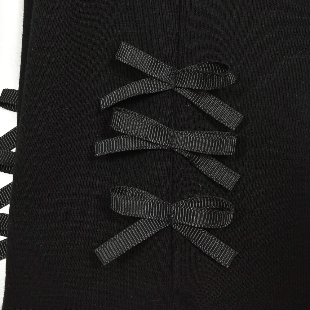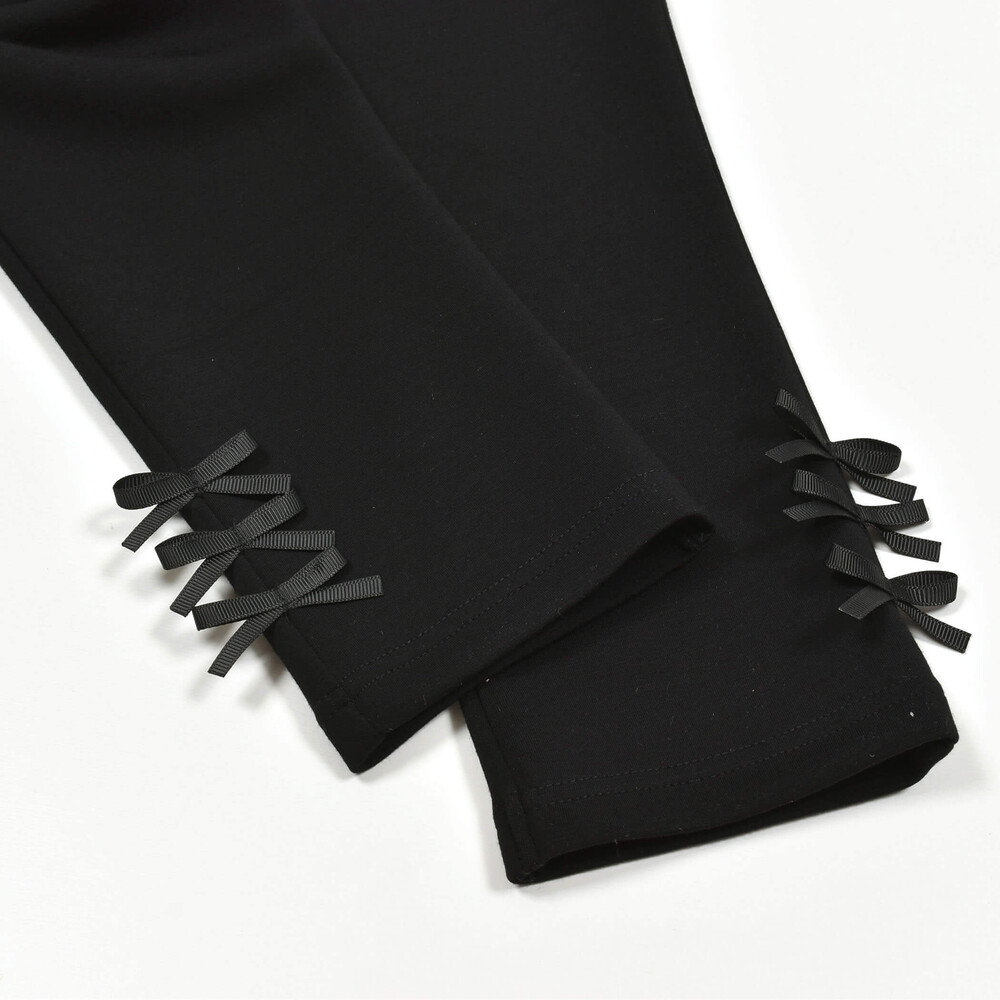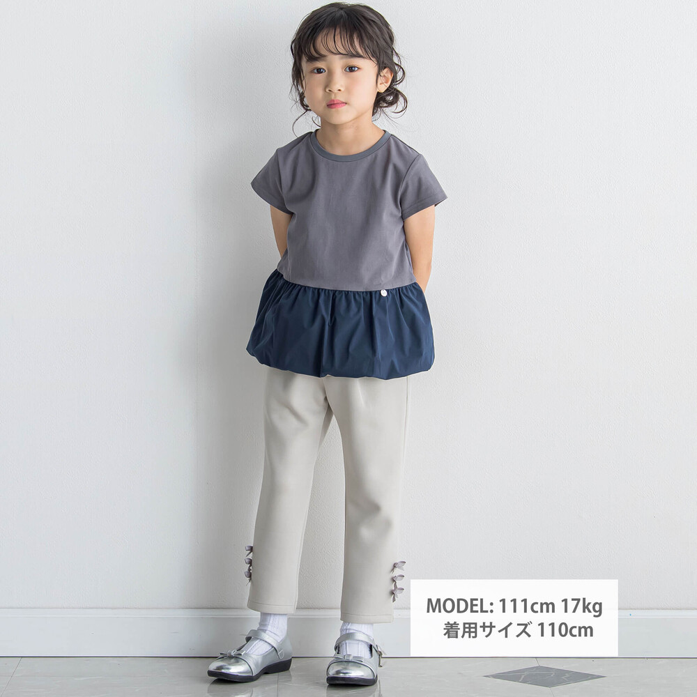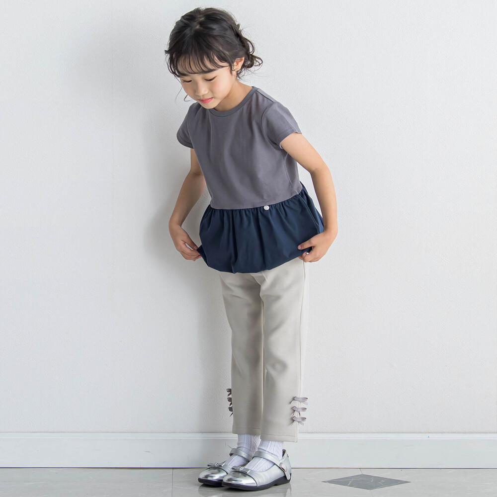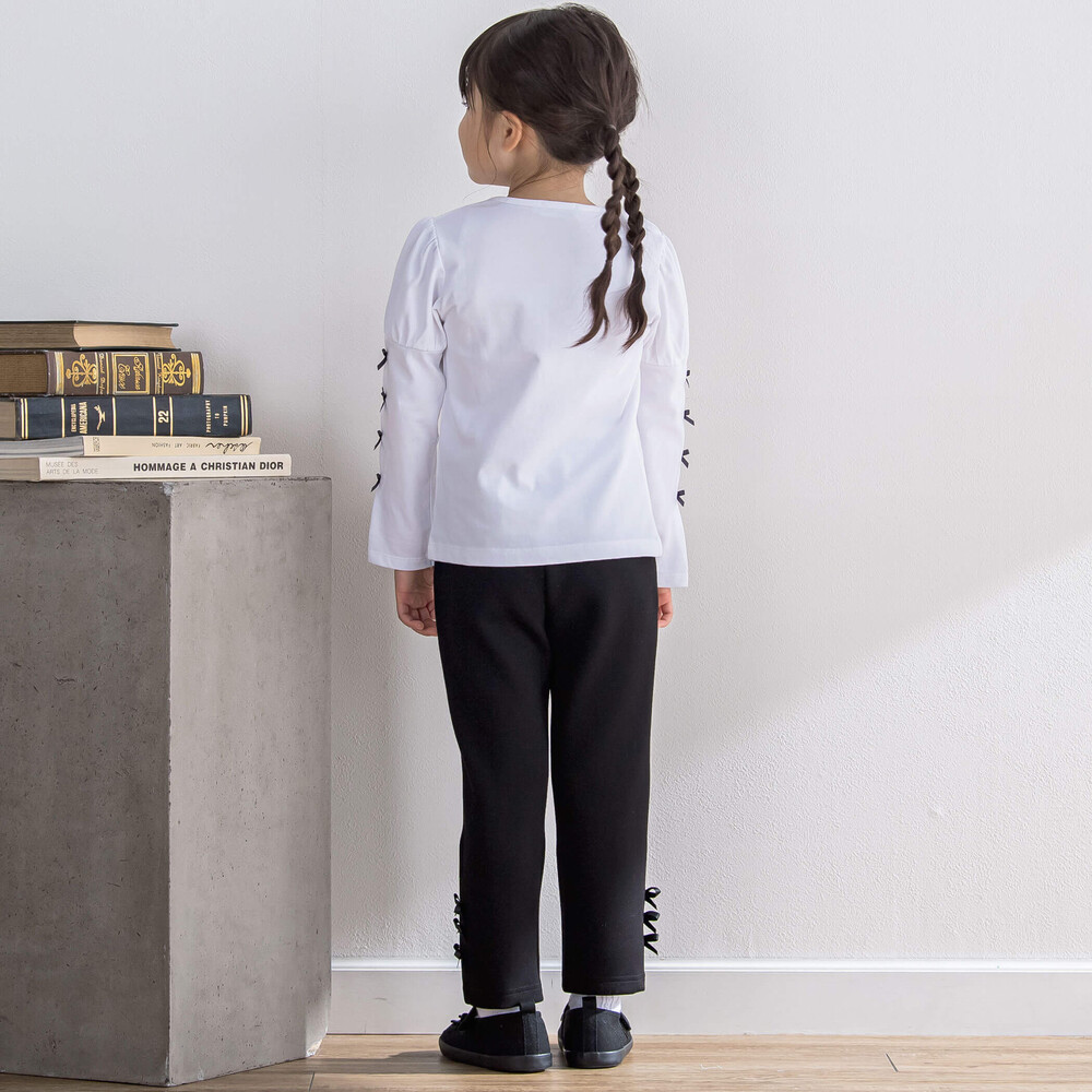 裾にならんだグログランリボンがかわいい女の子用ロングパンツ。