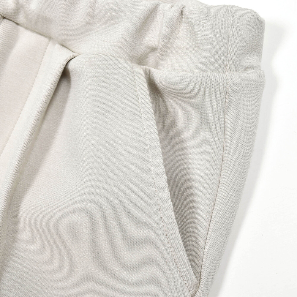 細めの裾口のテーパードシルエットでボリュームのあるトップスとも相性よく着ていただけます。