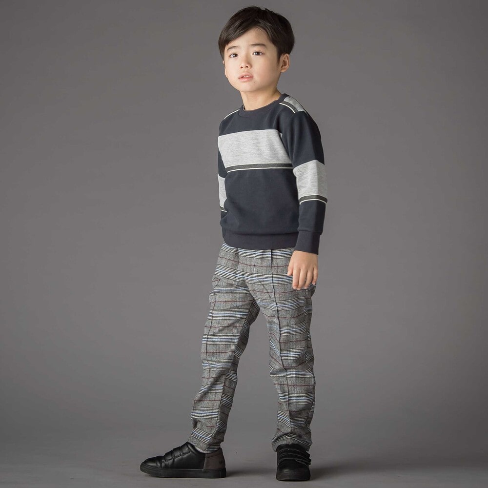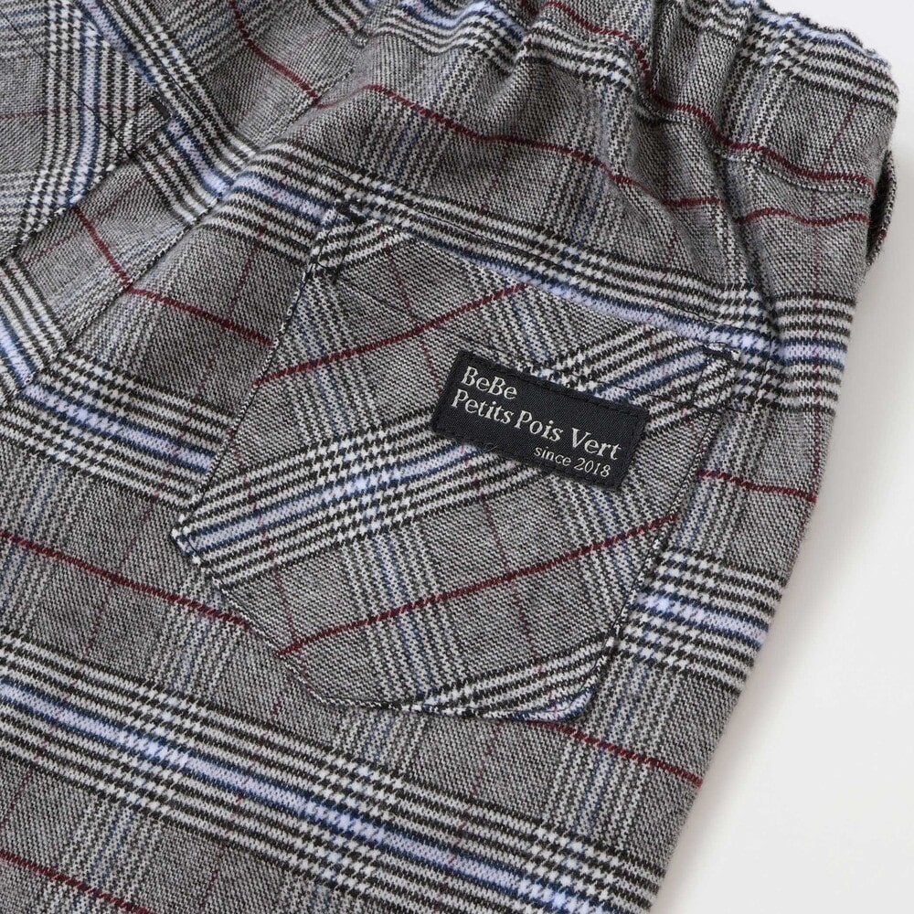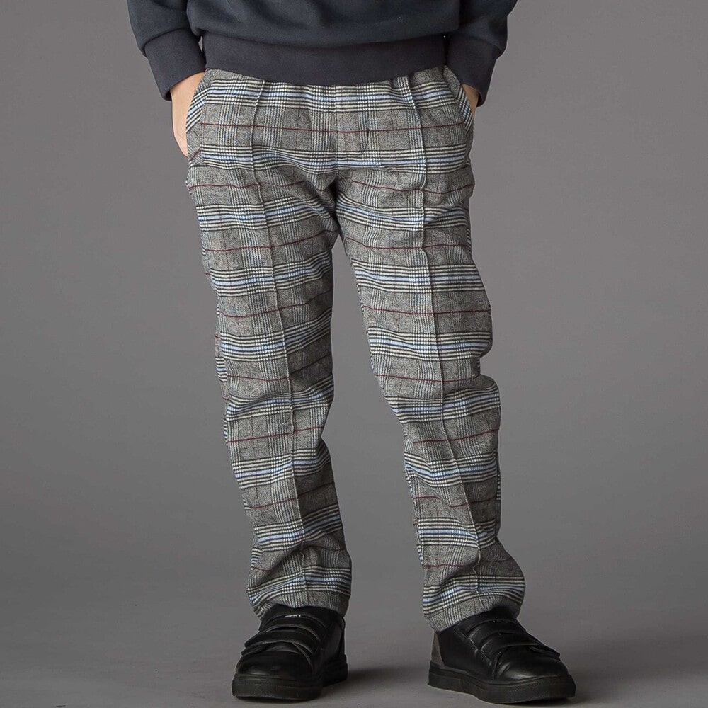 張りのあるチェック起毛を使用した男の子用センターシームパンツ。