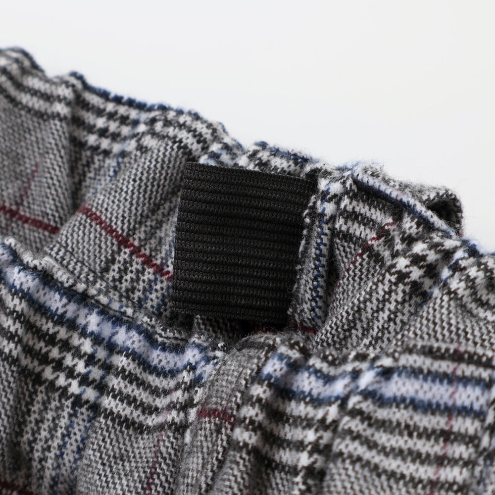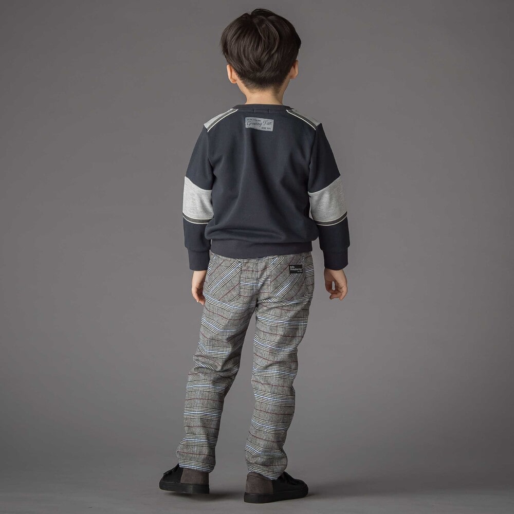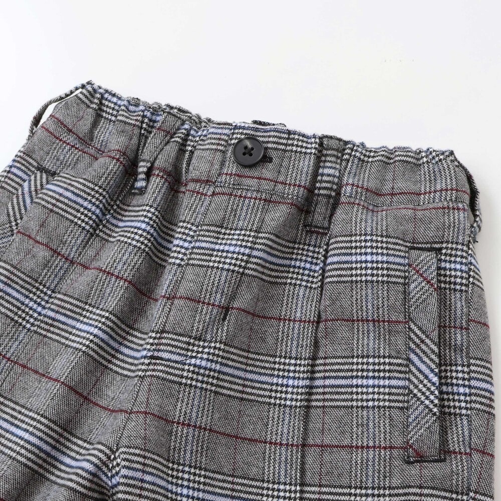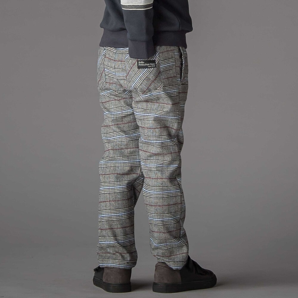 張りのあるチェック起毛を使用した男の子用センターシームパンツ。