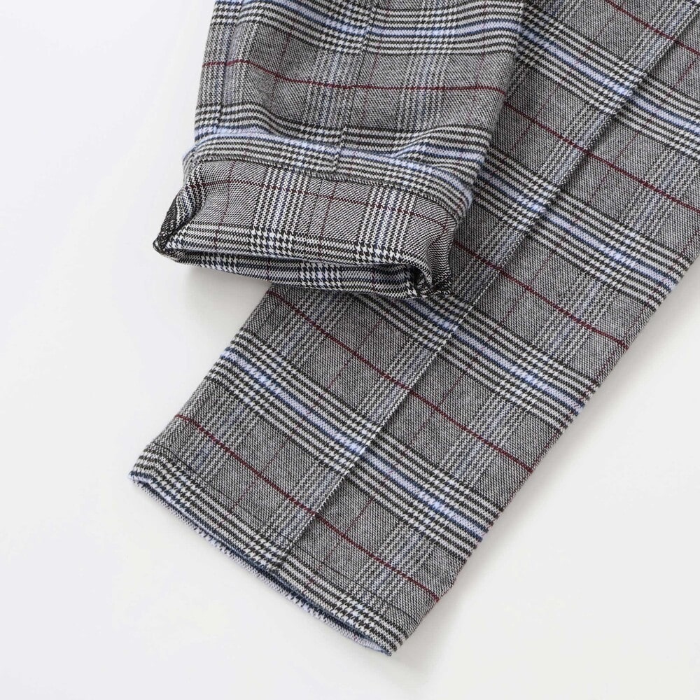 落ち着いたグレンチェックを使用しているので、オンオフ問わずに着用できるのも嬉しいポイントです。