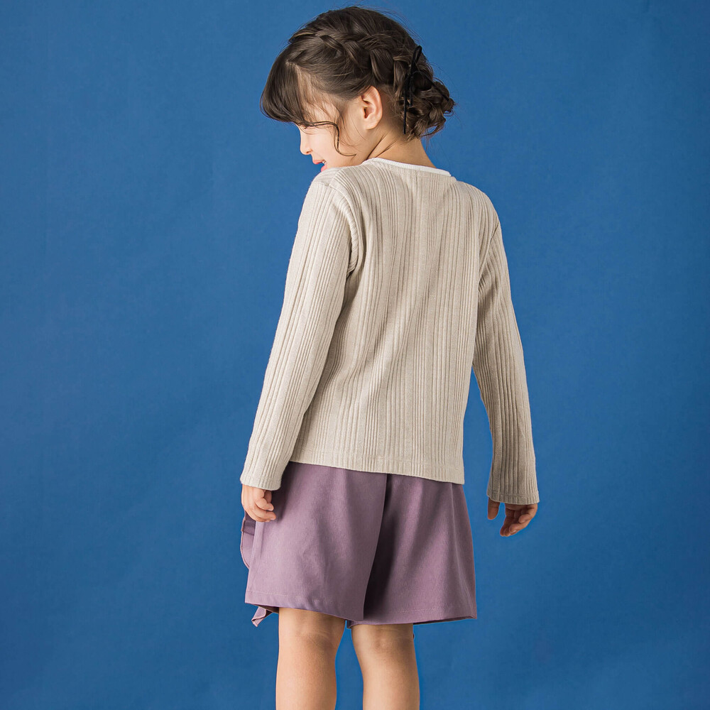 異素材のフリルが特徴的な女の子用のキュロットパンツです。