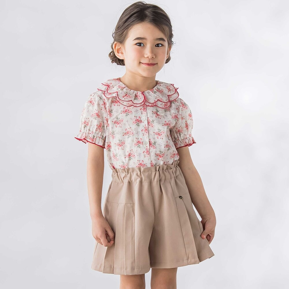 サイトのタックが上品さを演出し、スカート見えするシルエットで女の子らしいスタイルに仕上がります。